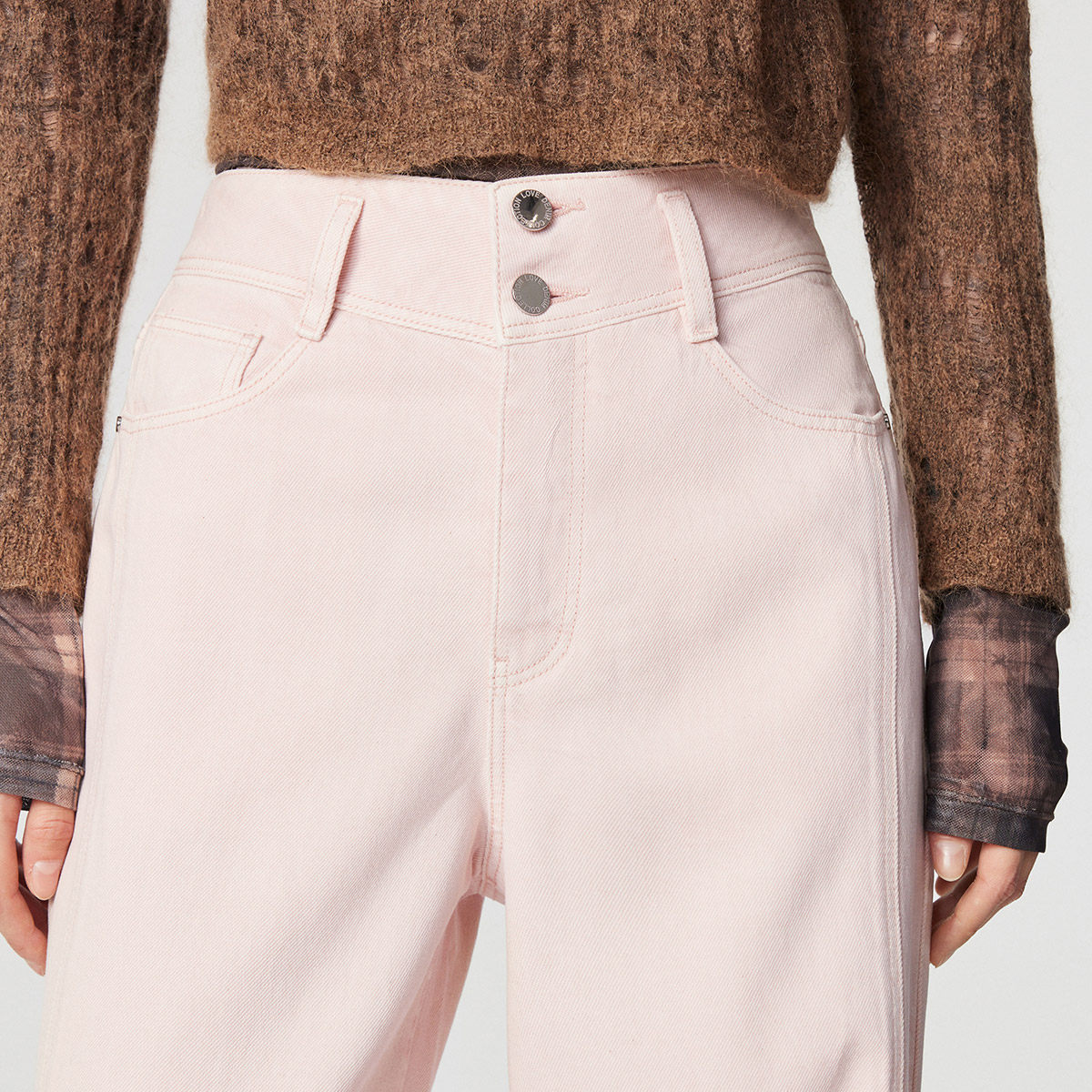 含莱赛尔粉色两粒扣V字腰头宽松直筒牛仔裤 ONLY2026春季 新款