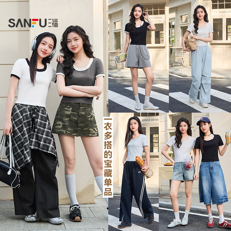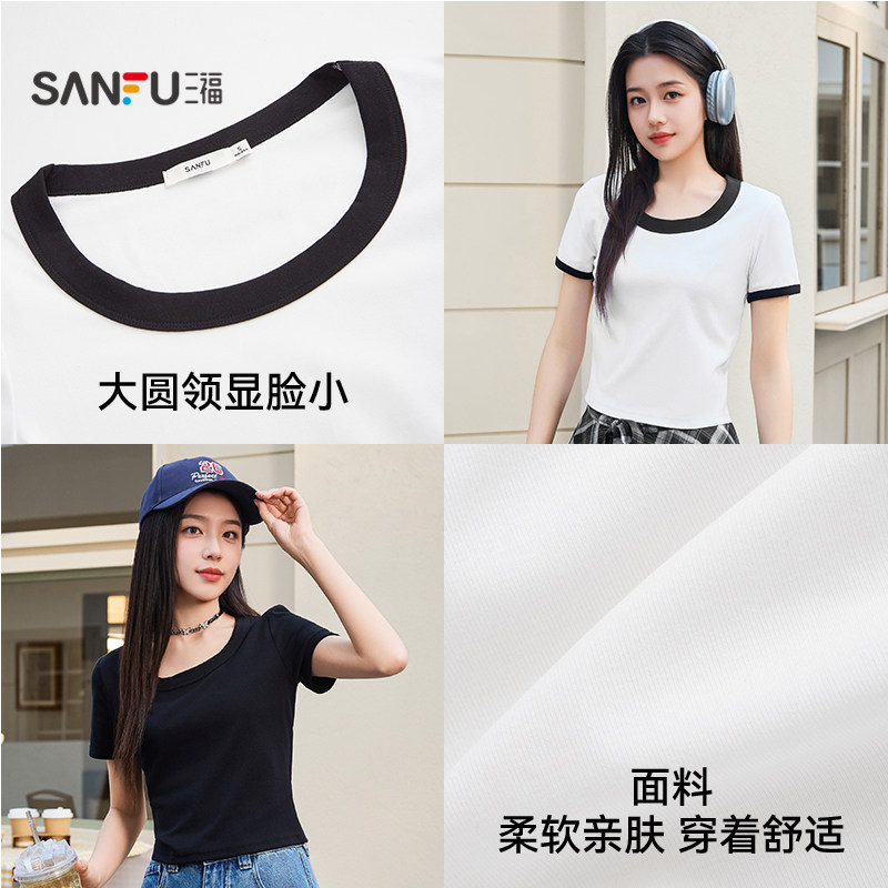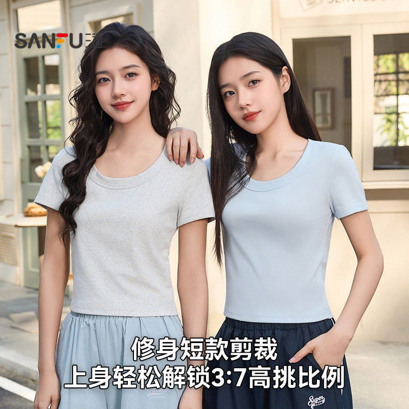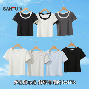 短袖 休闲圆领时尚 修身 短款 三福T恤女2026新款 小个子上衣女装 夏季