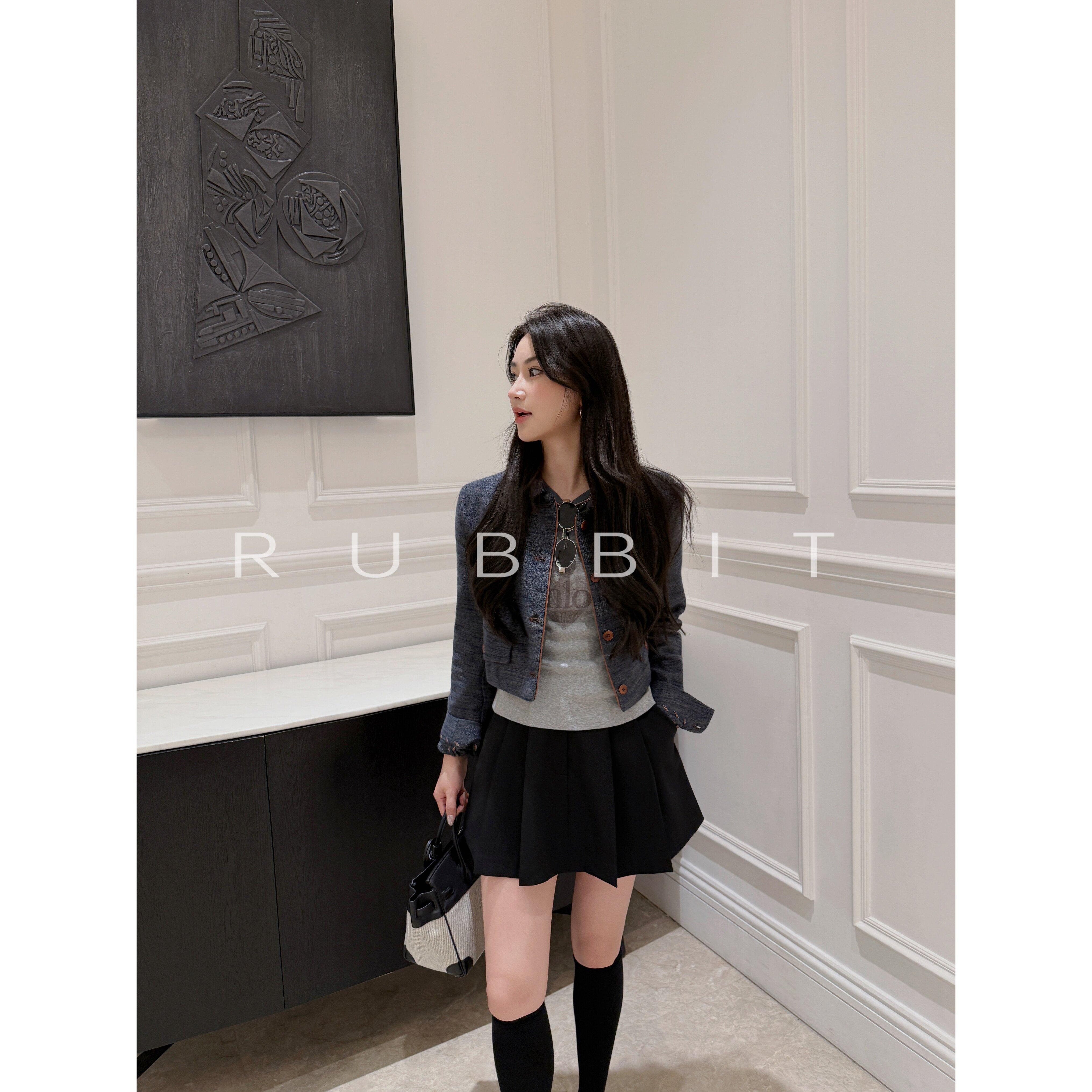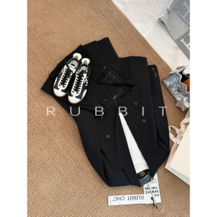 高腰A字百褶短裙 RUBBIT 外套 羊毛微收腰西装 气质两件套 CHIC
