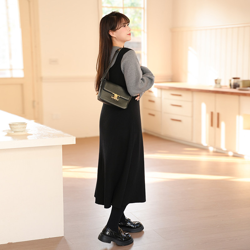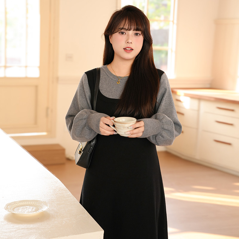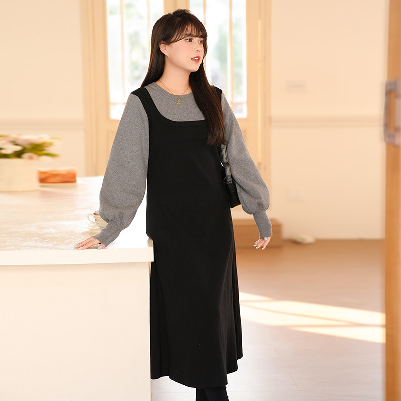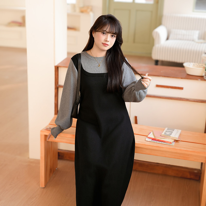 假两件休闲连衣裙女微胖显瘦时尚 雾糯墨弛 裙子 女装 慕翎大码