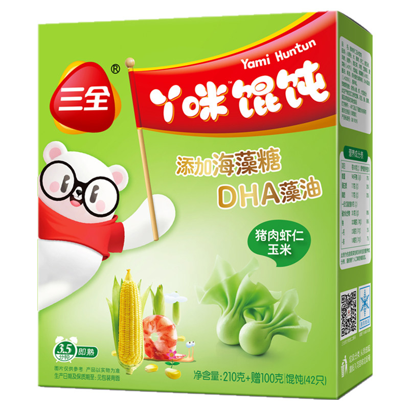 三全儿童水饺馄饨虾仁胡萝卜鳕鱼海苔猪肉嫩青菜三鲜多口味任选