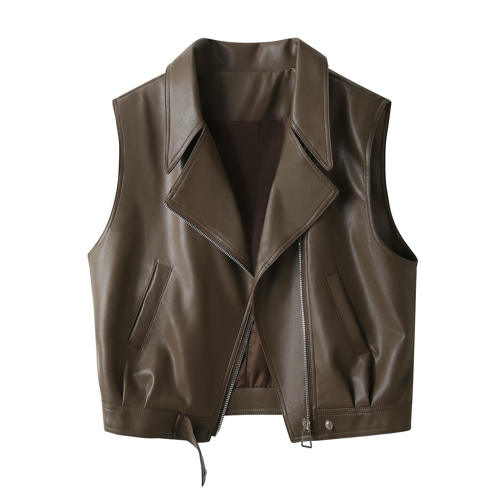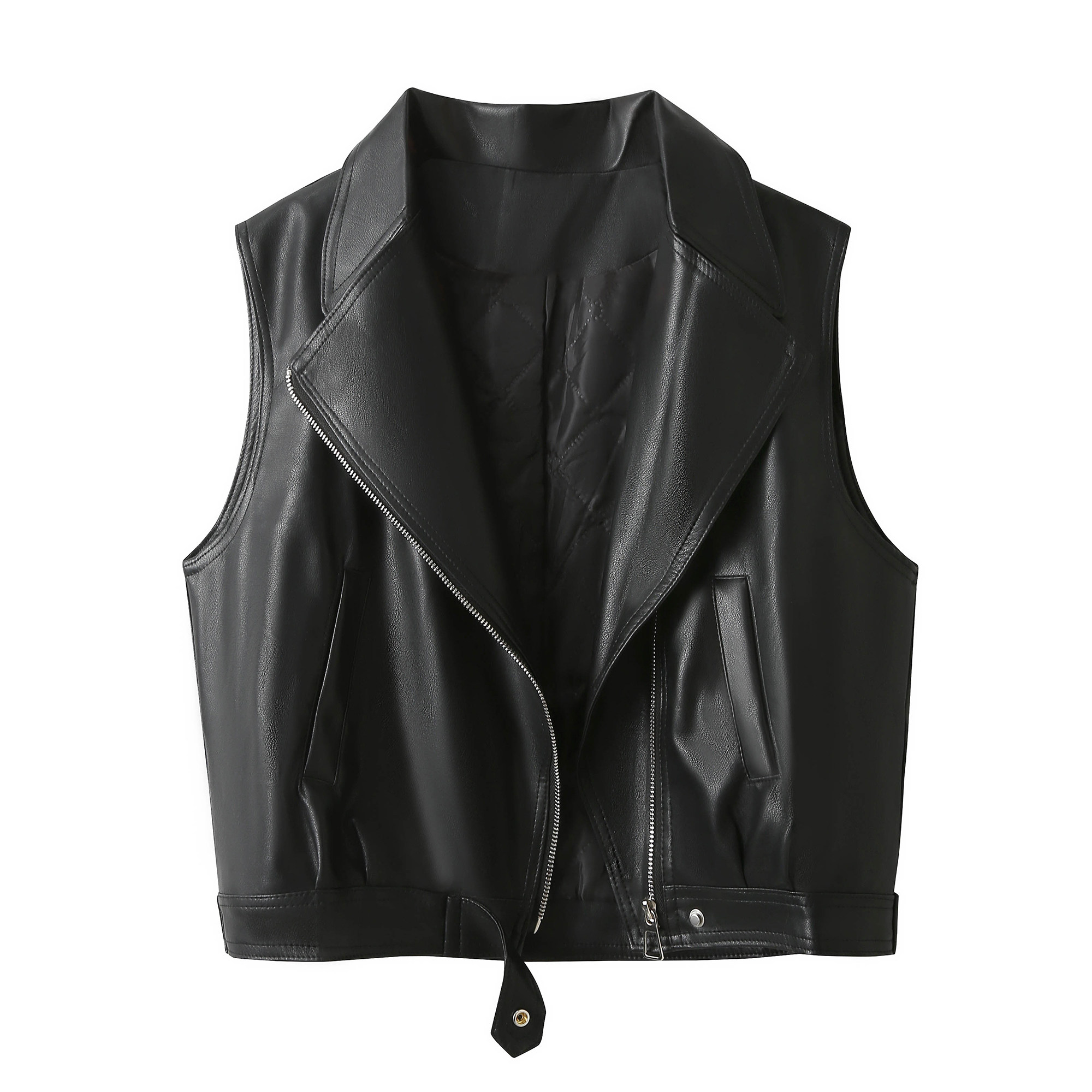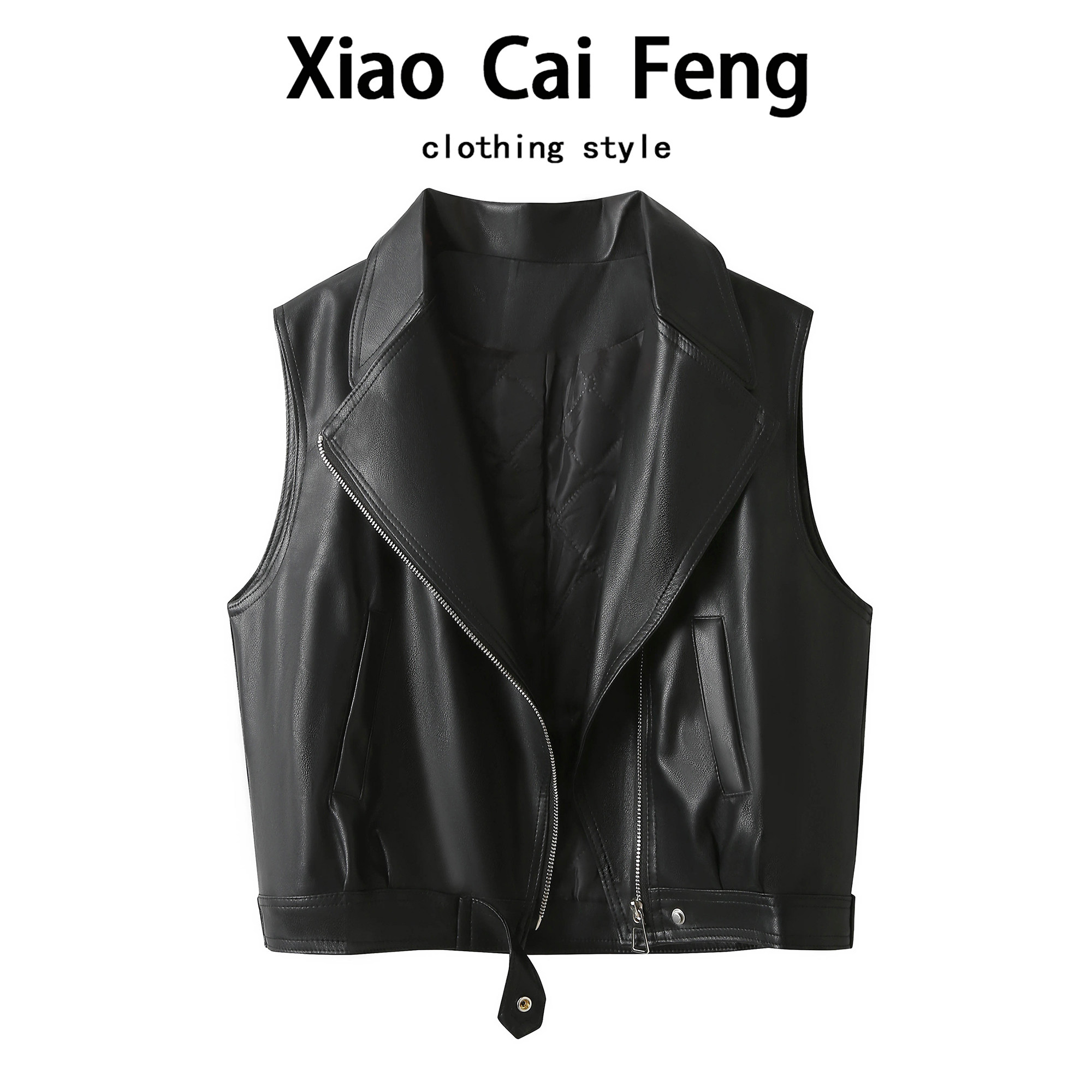 欧货机车夹克皮衣马甲短外套女春秋季 pu皮小众坎肩马夹 设计感无袖