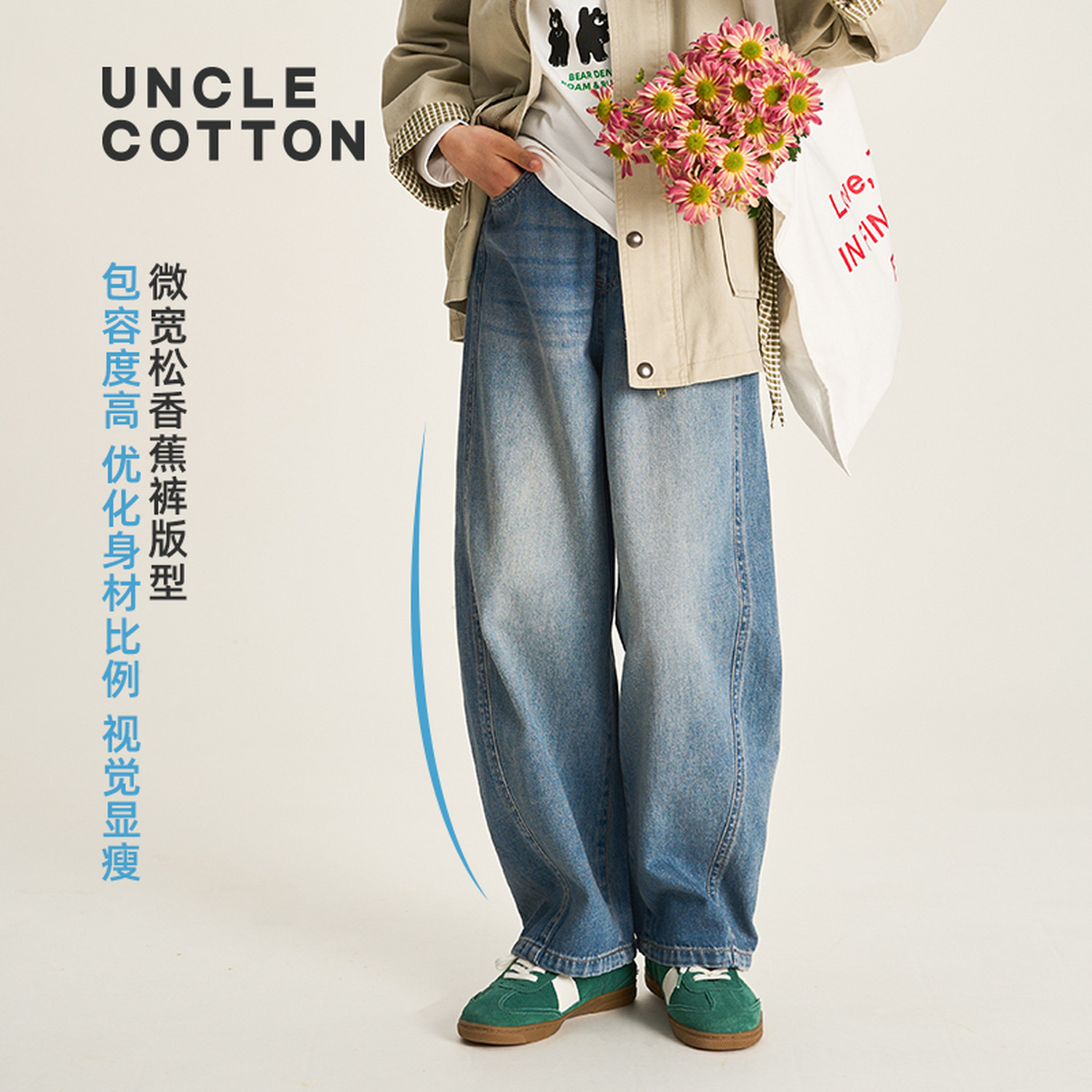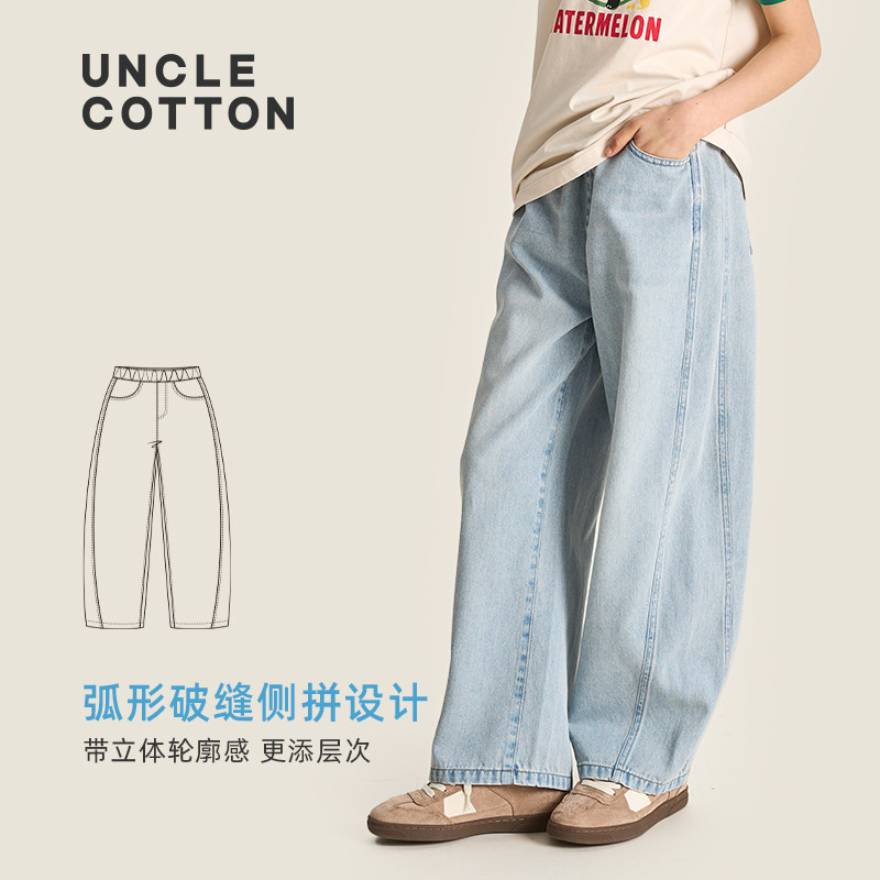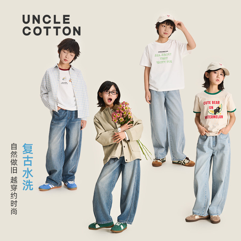 子男童 棉叔叔女童天丝棉牛仔复古水洗香蕉裤 蓬松泡芙软牛仔裤