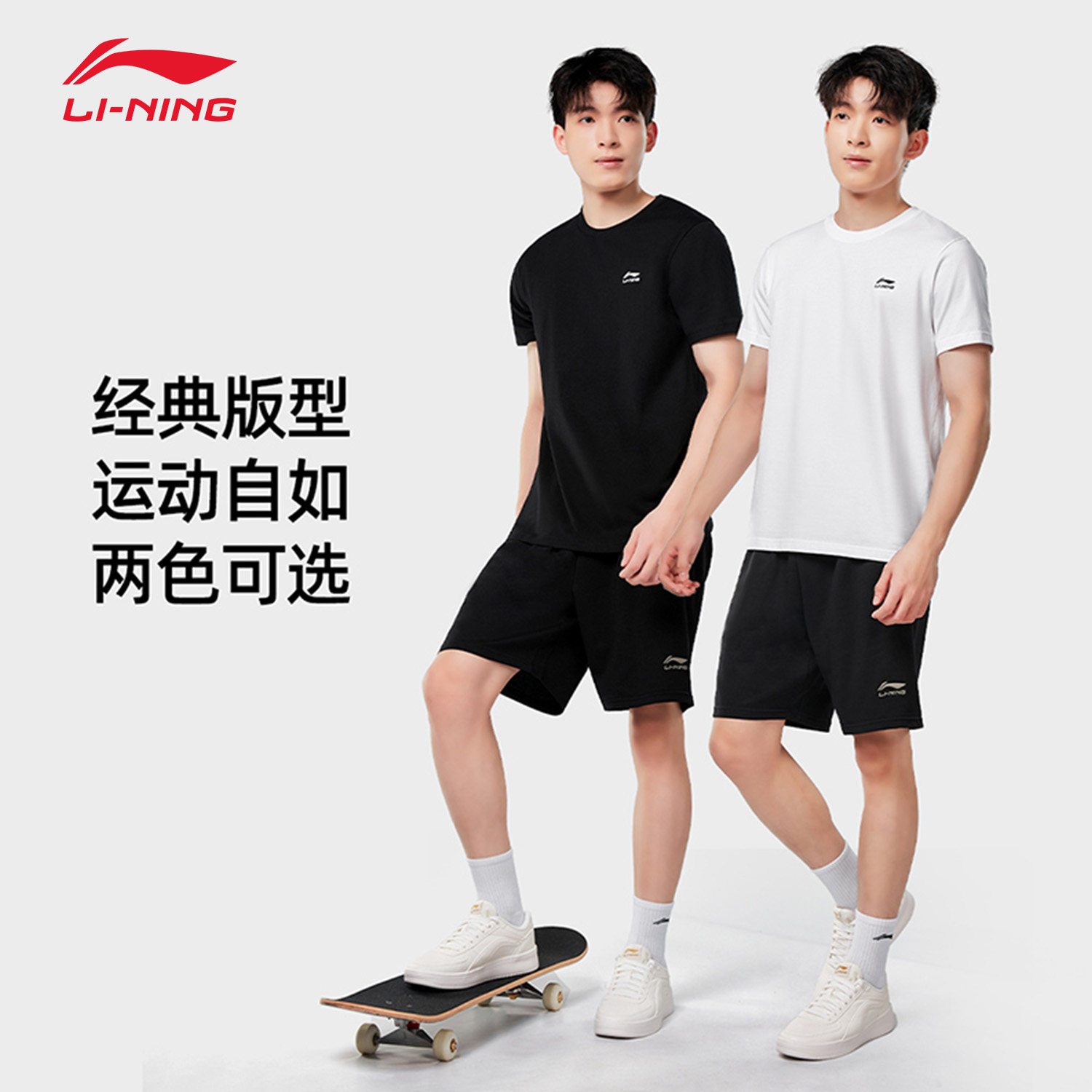 宽松休闲透气圆领运动服 夏季 李宁短袖 男t恤纯棉亲肤上衣2026新款