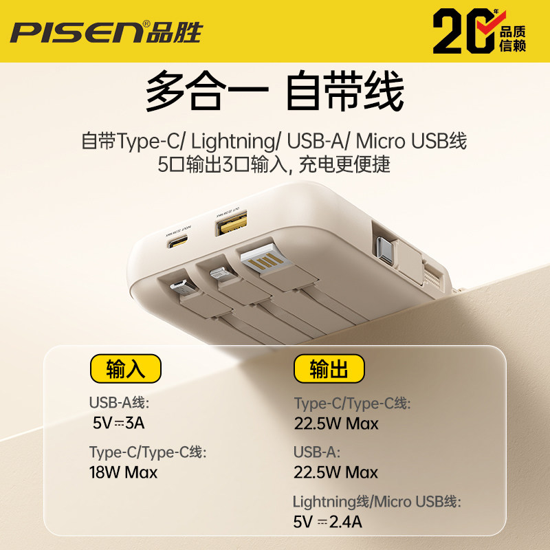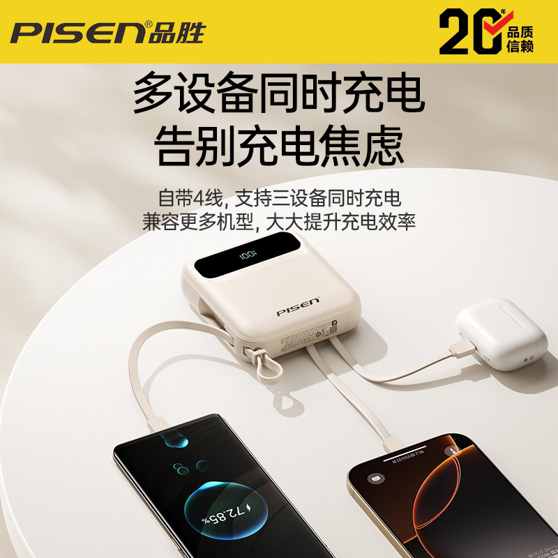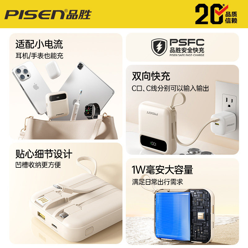2026新款 品胜充电宝3C认证可上飞机超薄迷你自带四线快充大容量10000mAh移动电源适用华为小米苹果专用17