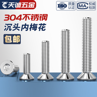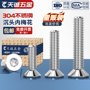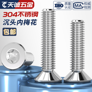 304不锈钢螺丝沉头平头内梅花带柱防盗螺钉M2M2.5M3M4M5M6M8M10mm