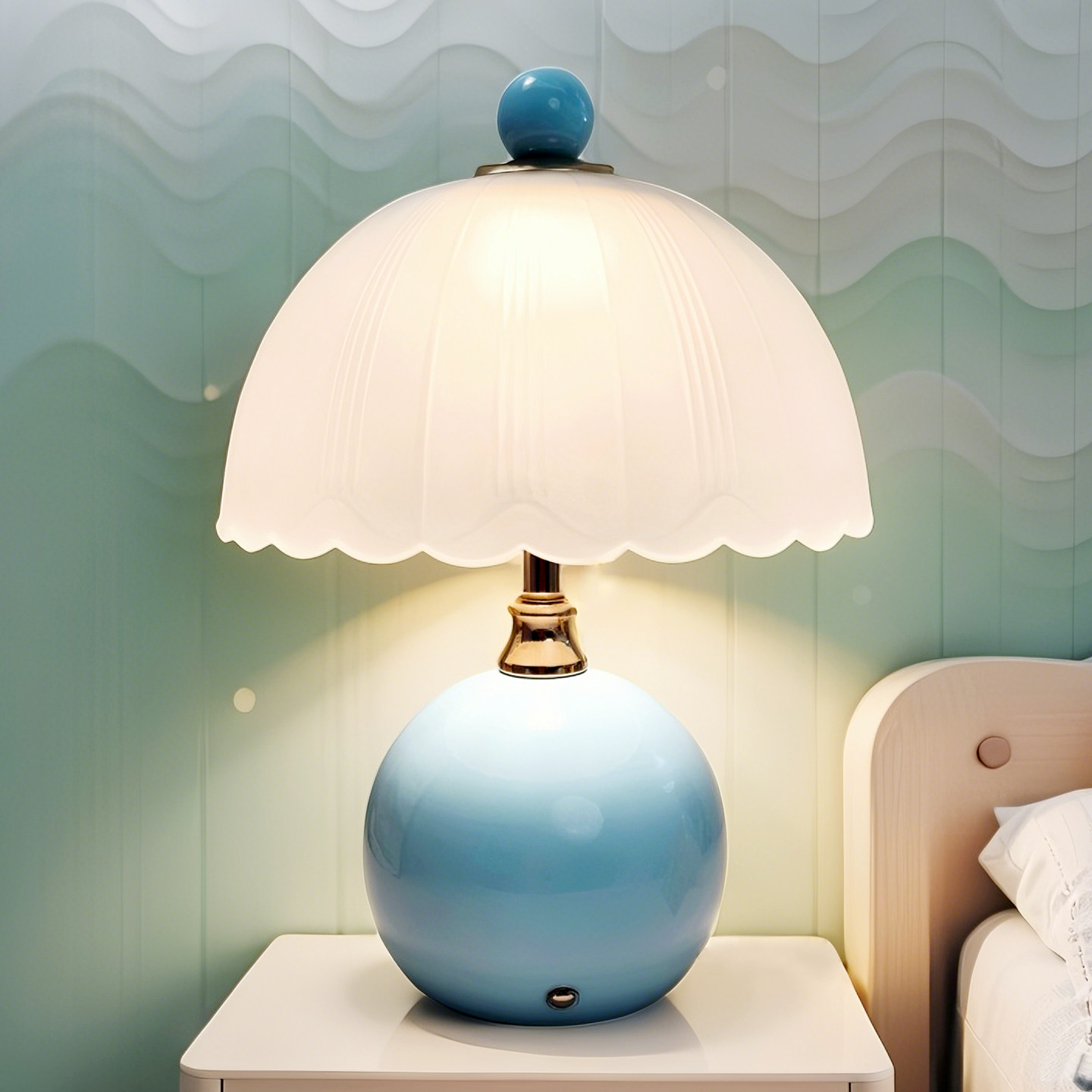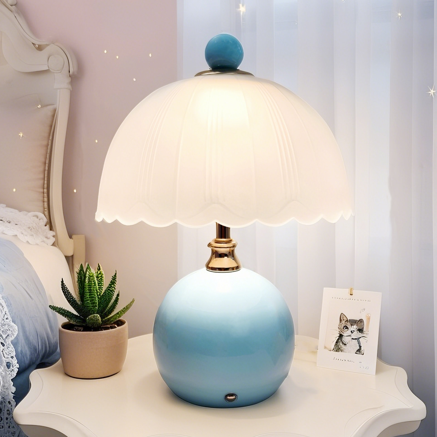 奶油风台灯创意高级感轻奢装 饰台灯卧室床头柜主卧温馨结婚氛围灯