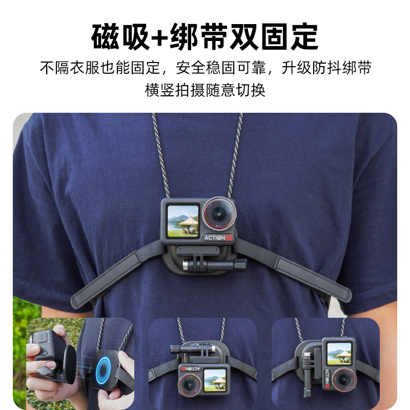 Flymile适用大疆Osmo360磁吸挂脖支架全景相机胸前固定支架第一人称Vlog隐形支架胸带出行配件