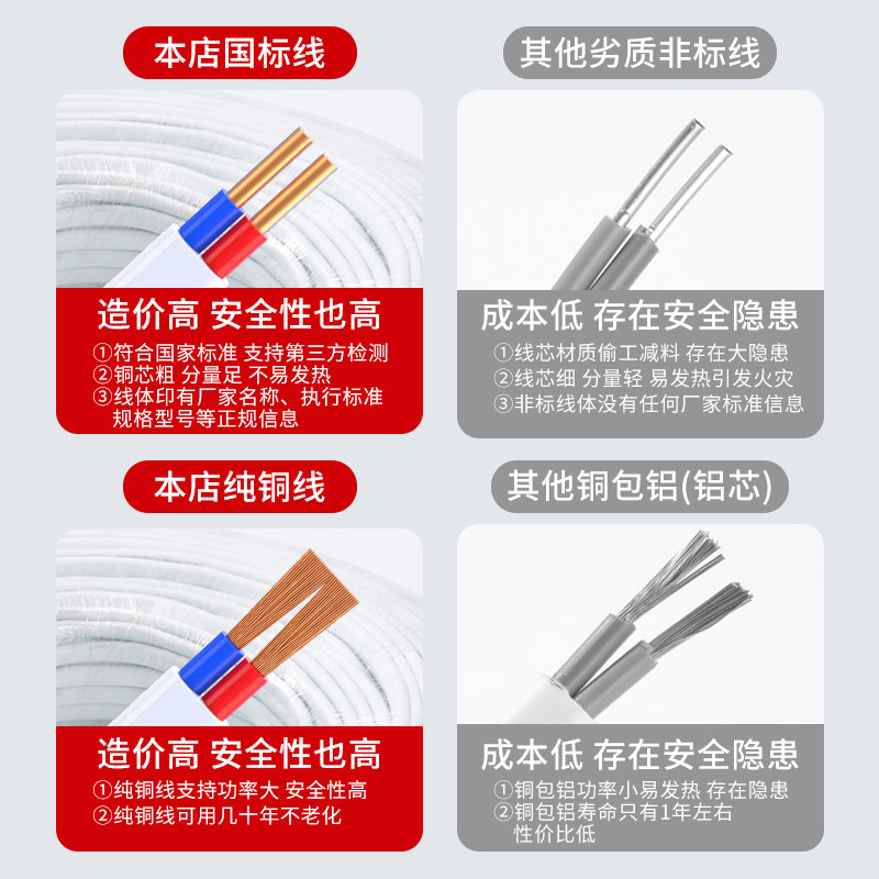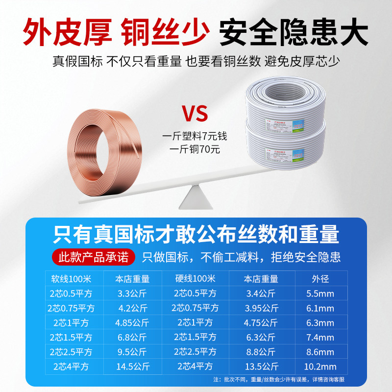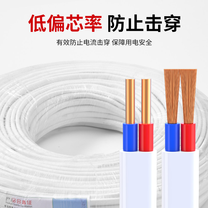 6平方家用电源线硬线 国标护套线2芯BVVB纯铜芯白色电线1.5 2.5