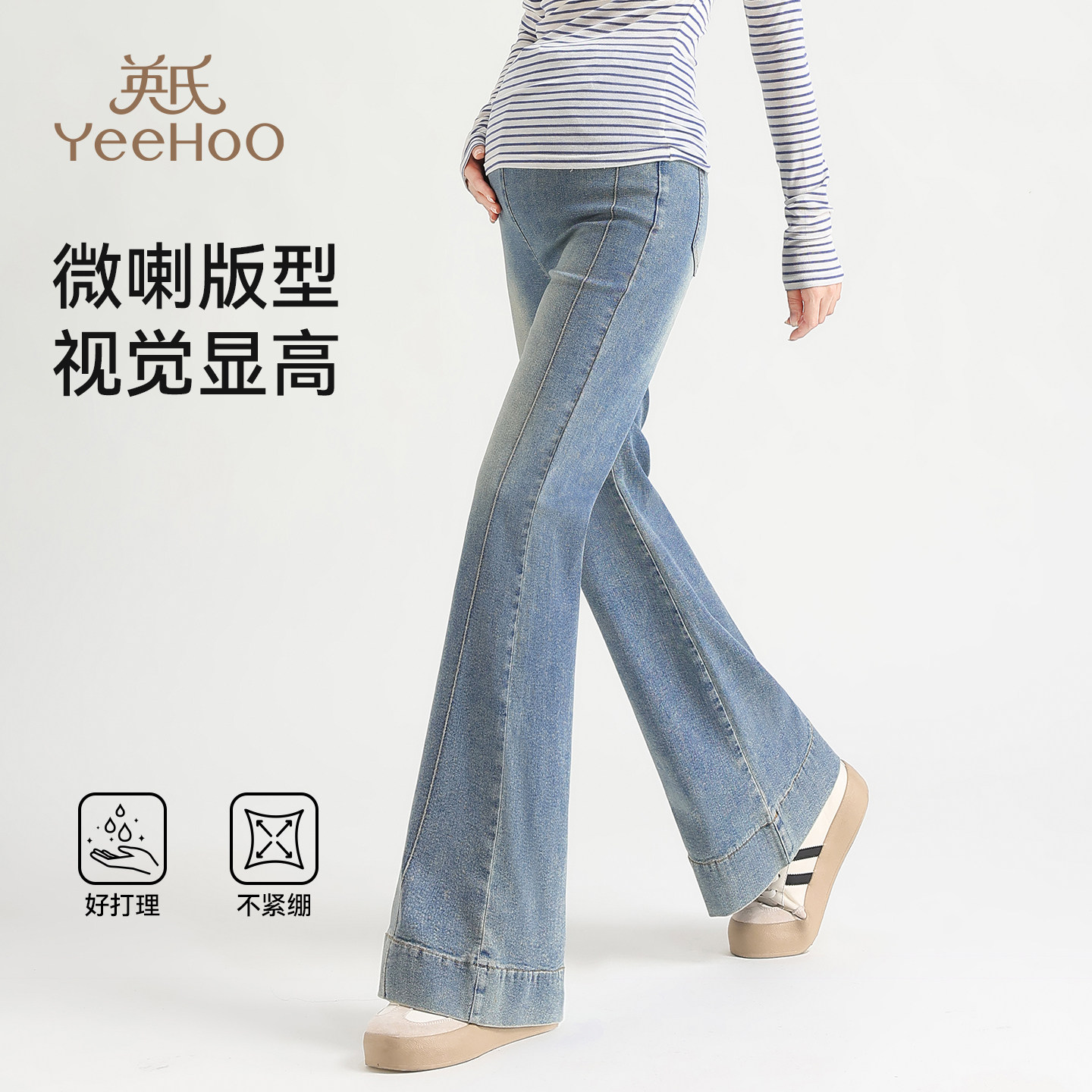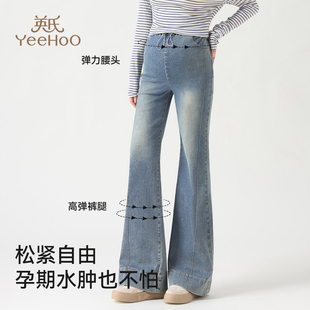 不勒肚显瘦百搭无托腹休闲裤 弹力大码 2025秋冬新款 英氏孕妇微喇裤