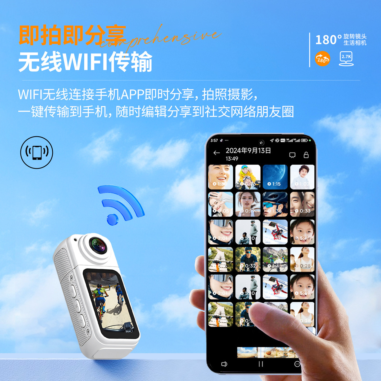 QZQA户外拇指相机新款 超长续航2.7KWiFi180旋转挂脖摄像运动相机
