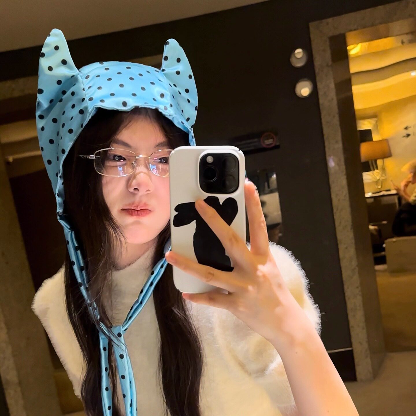 千禧y2k小恶魔包头帽女可爱少女波点绑带帽子辣妹音乐节拍照帽子