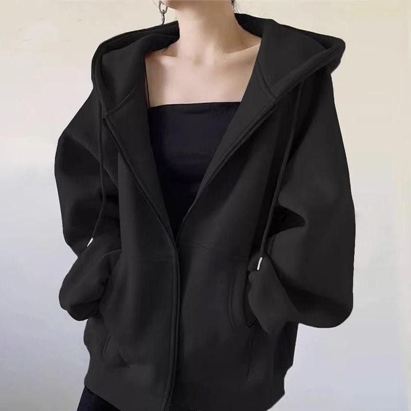 慵懒风宽松女士薄外套 新款 即墨纯棉藏青连帽开衫 卫衣女2025秋冬装