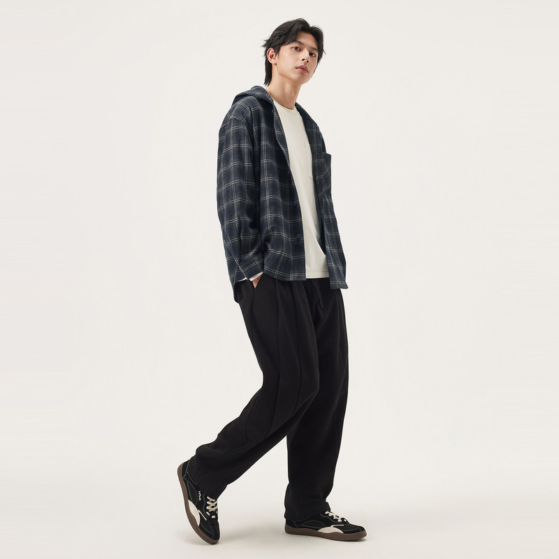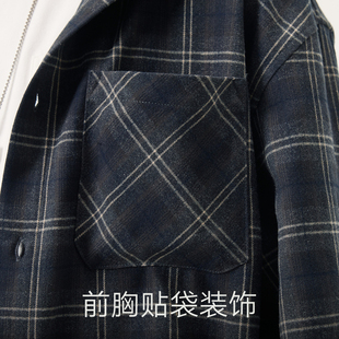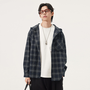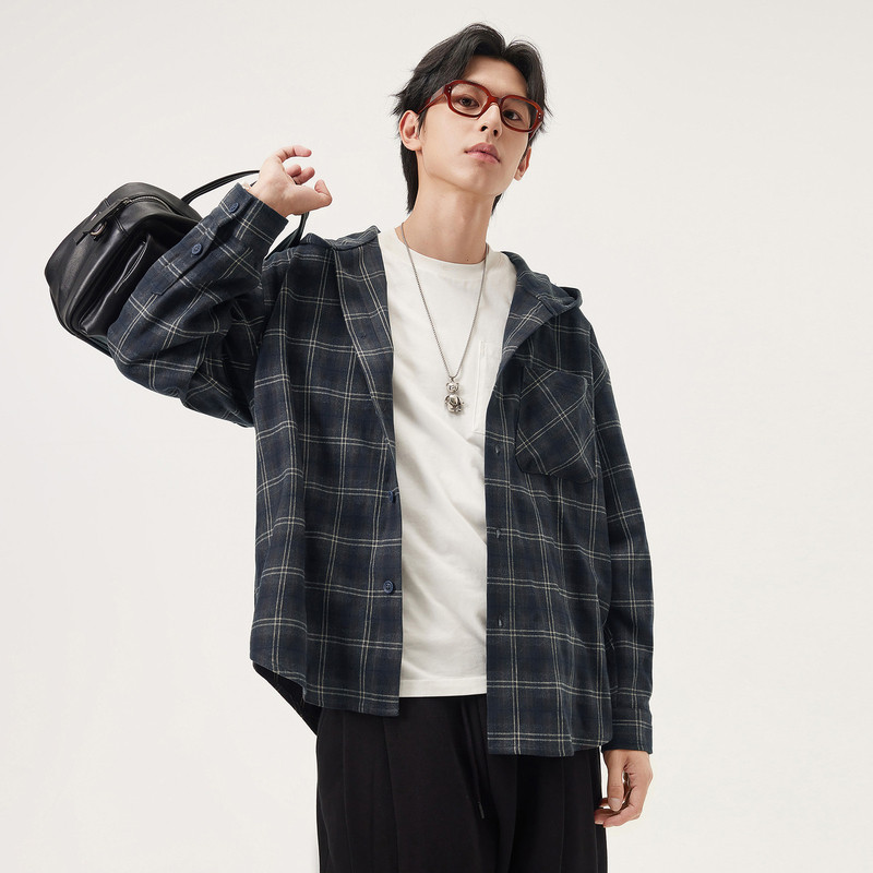 25秋新品 gxg.jeans男装 蓝色格纹复古潮流宽松连帽夹克外套男