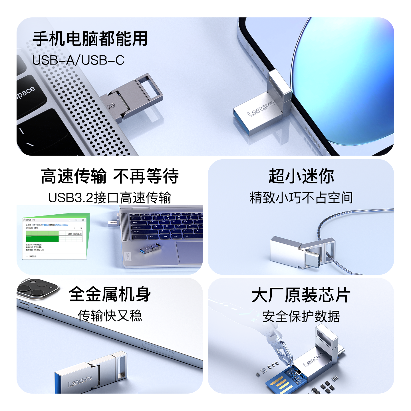 联想迷你u盘typec双接口手机电脑两用128g大容量车载正品 优盘64g