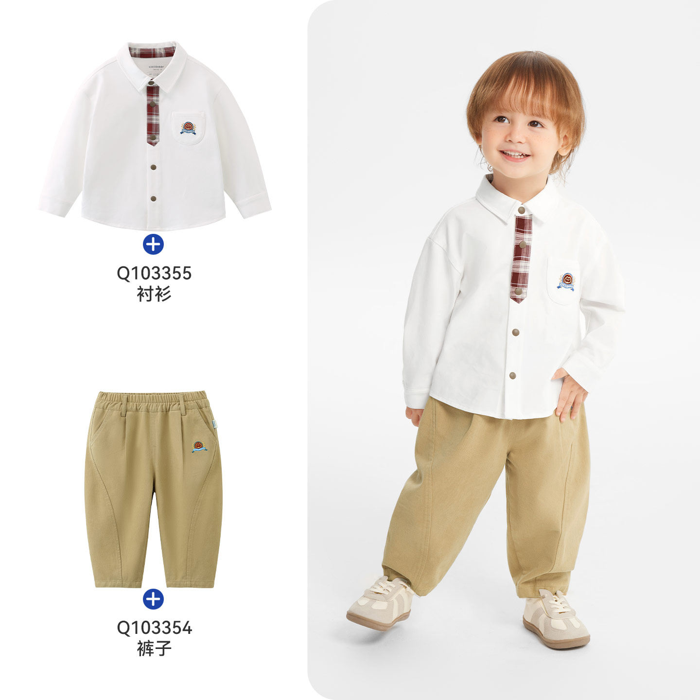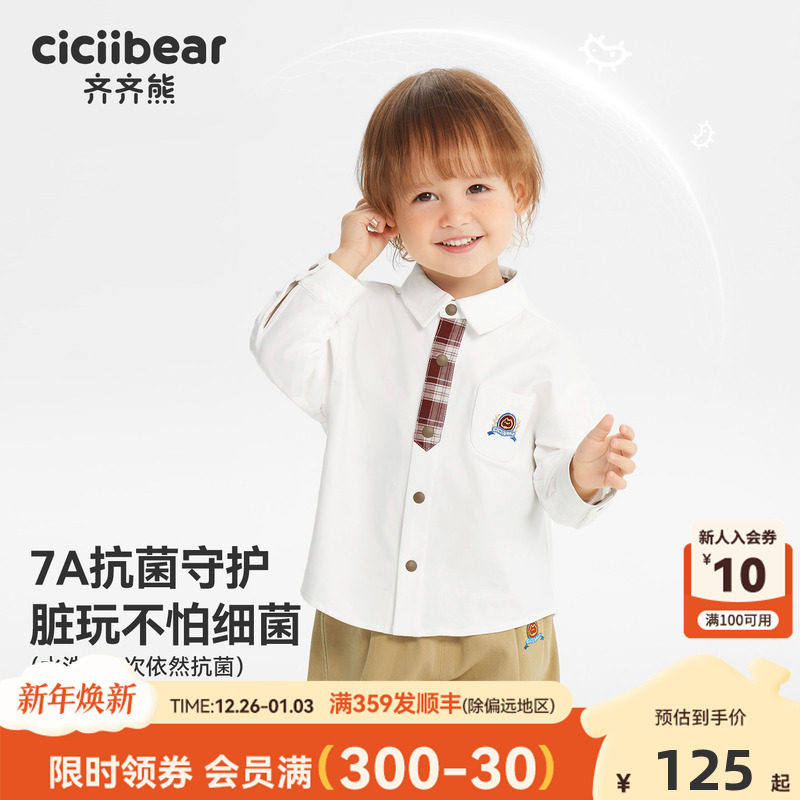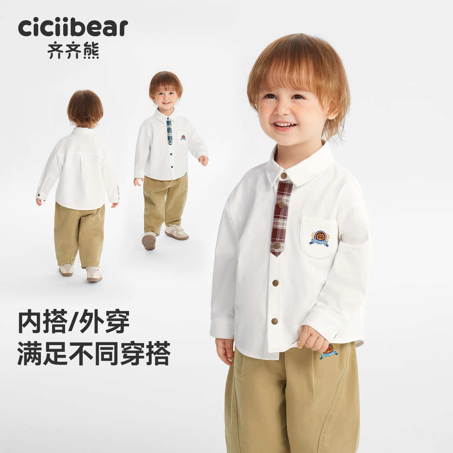 男童春秋2025新款 长袖 齐齐熊宝宝白衬衫 学院风儿童衬衣 软糯抗皱
