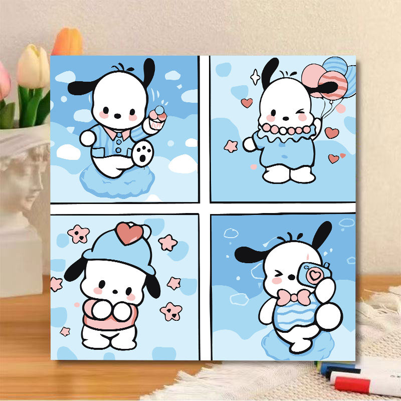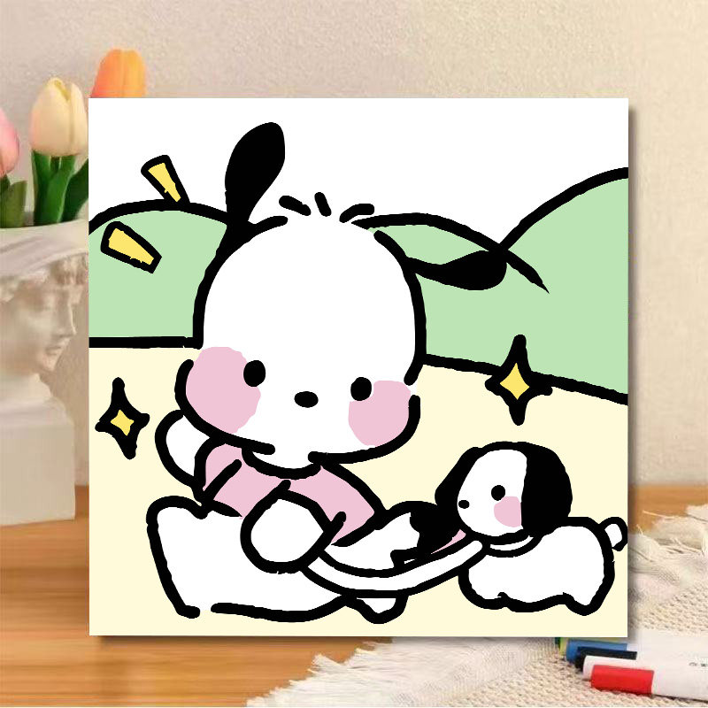 diy数字油画帕恰狗系列可爱卡通手绘填色填充油彩礼物装 饰画