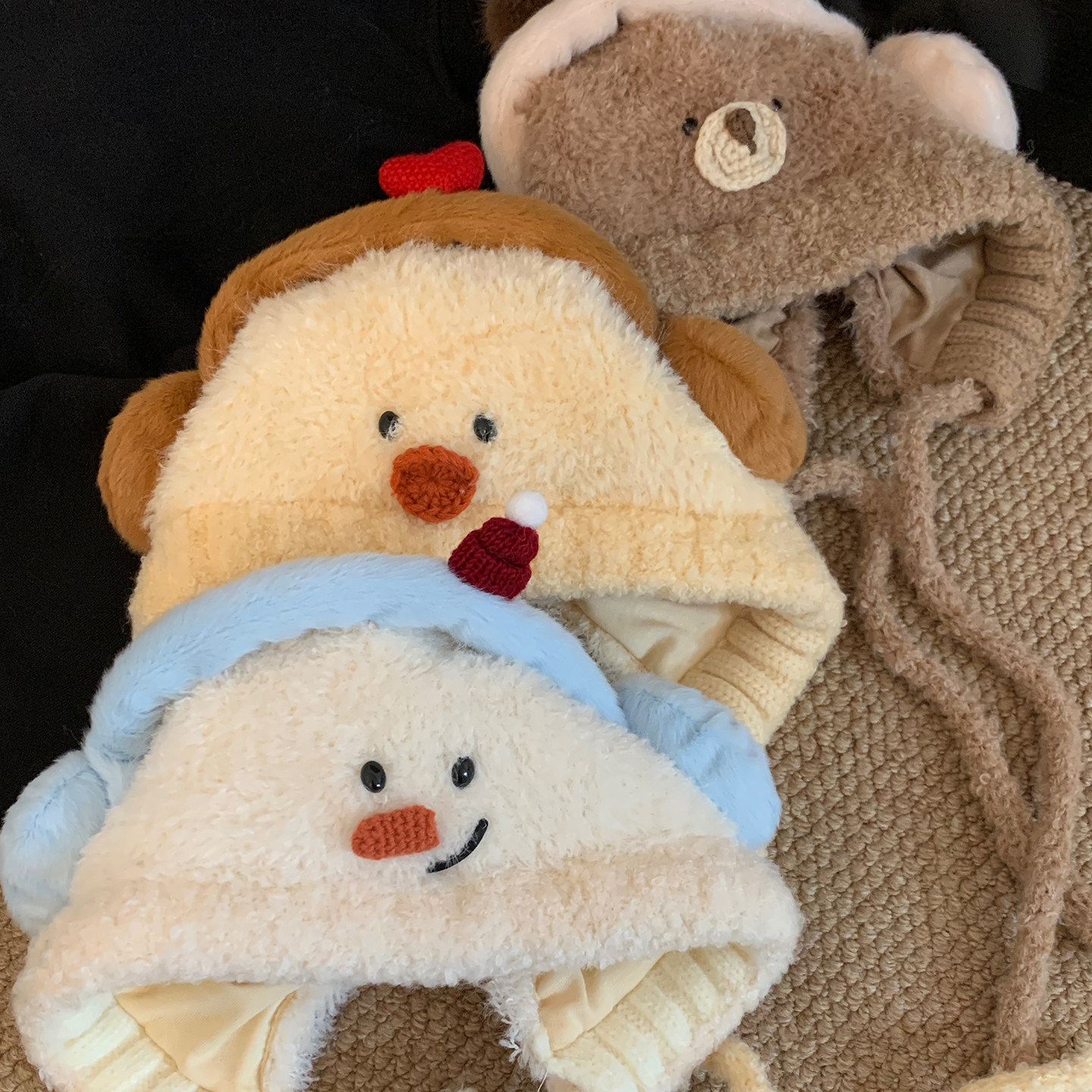 耳朵会动系列 卡通可爱动物造型毛绒帽子女秋冬加厚保暖雷锋帽子