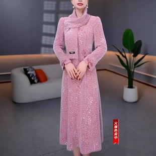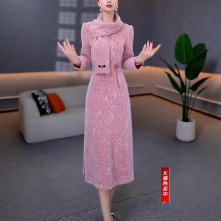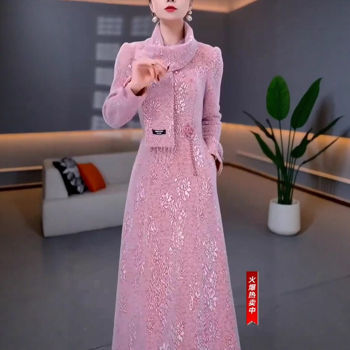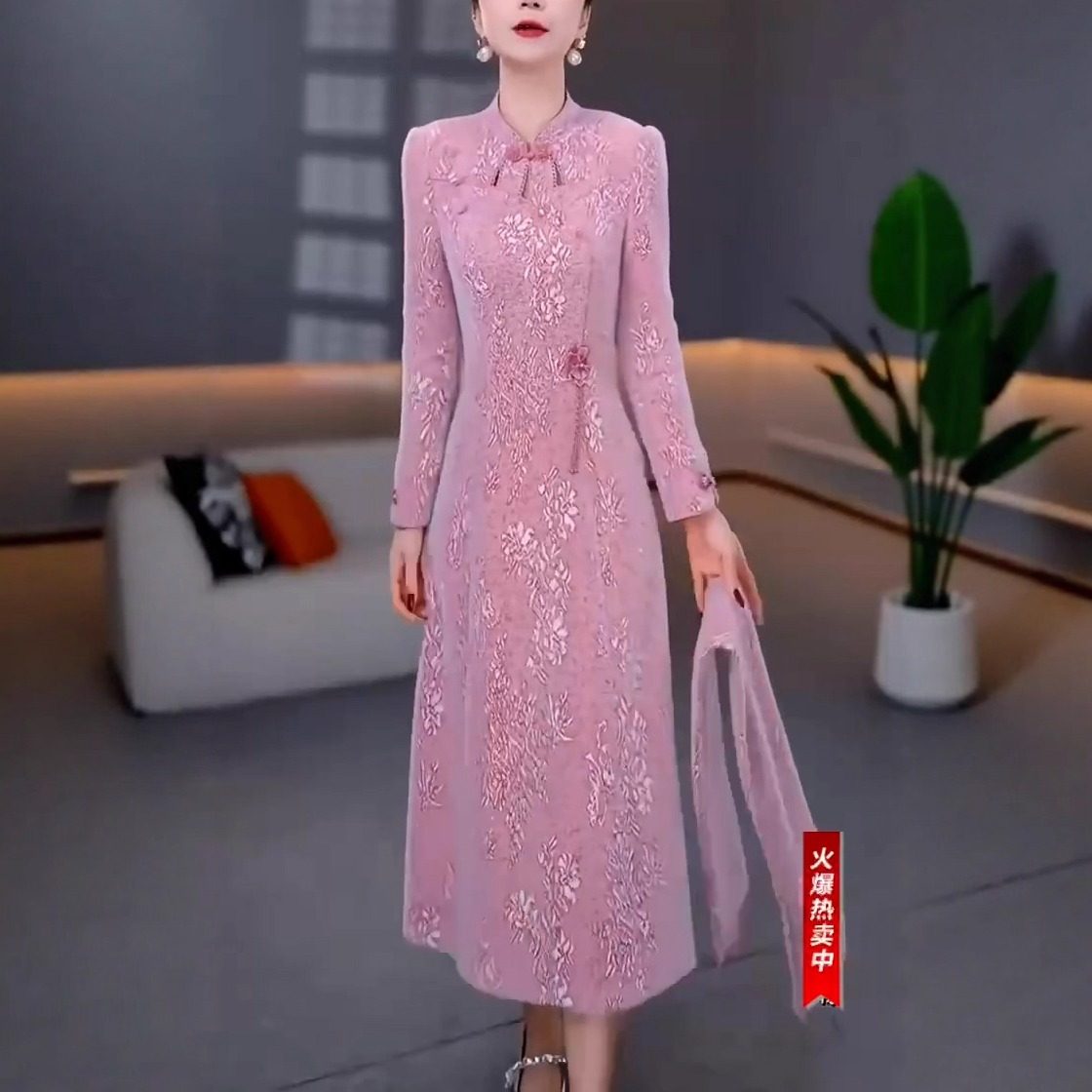 十三行送围巾秋冬高端中式 国风复古重工提花改良旗袍优雅连衣裙女