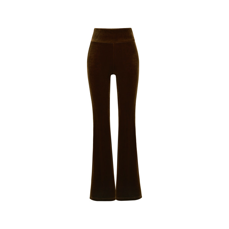 显瘦显腿长百搭喇叭裤 XULU原创秋冬简约气质金棕色丝绒长裤 修身