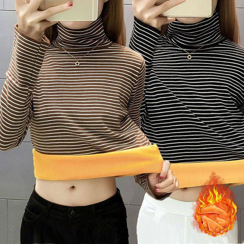 t恤修身 内外搭保暖长袖 上衣潮 女士2026秋冬季 加绒加厚高领打底衫