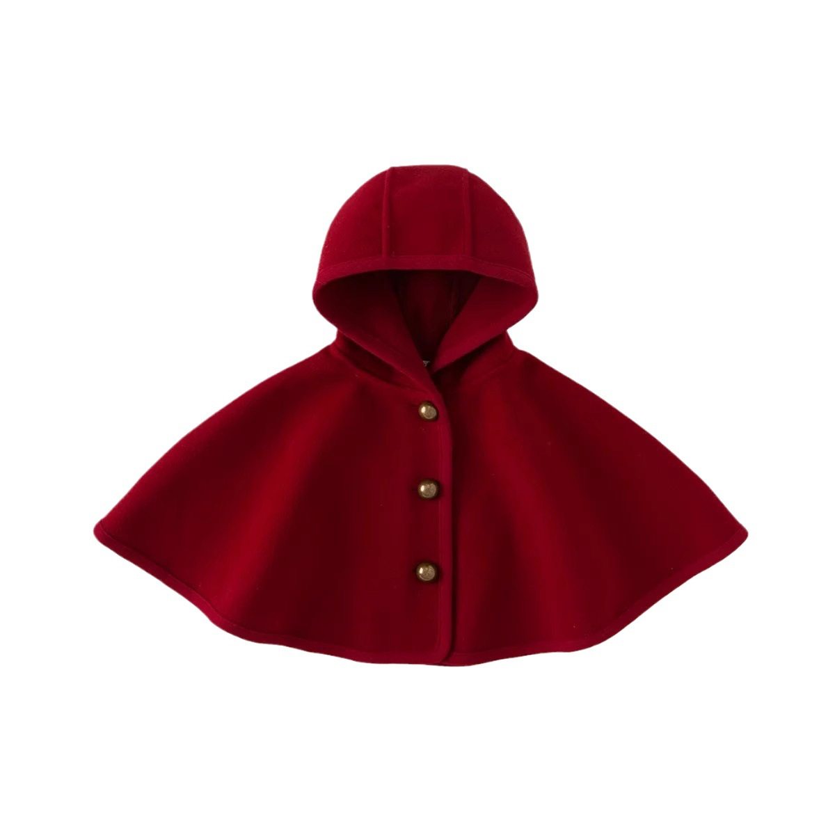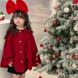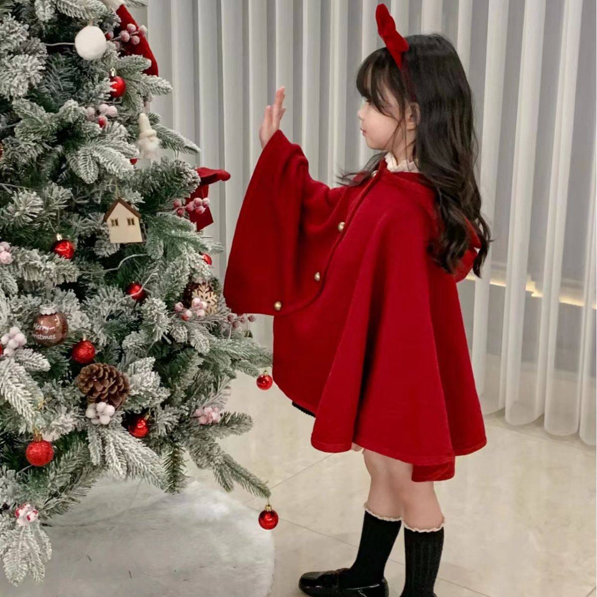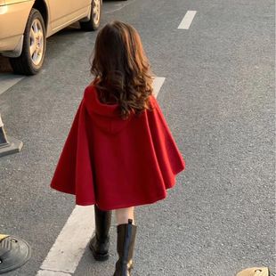 时髦连帽红色斗篷披肩 潮韩版 秋冬女童装 外套披风宝宝洋气儿童个性