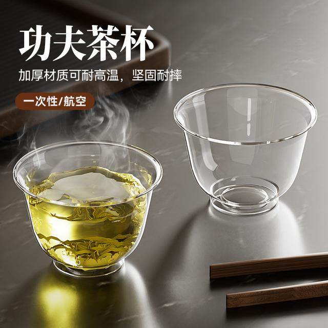 功夫茶杯航空水晶杯耐高温硬塑一次性茶杯商用防 抢50只 6.8元