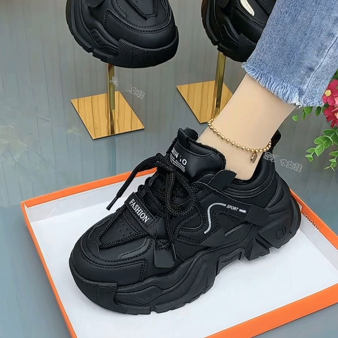 新款 ins潮老爹鞋 阿甘鞋 休闲运动板鞋 子 女厚底百搭小白鞋 2024春季