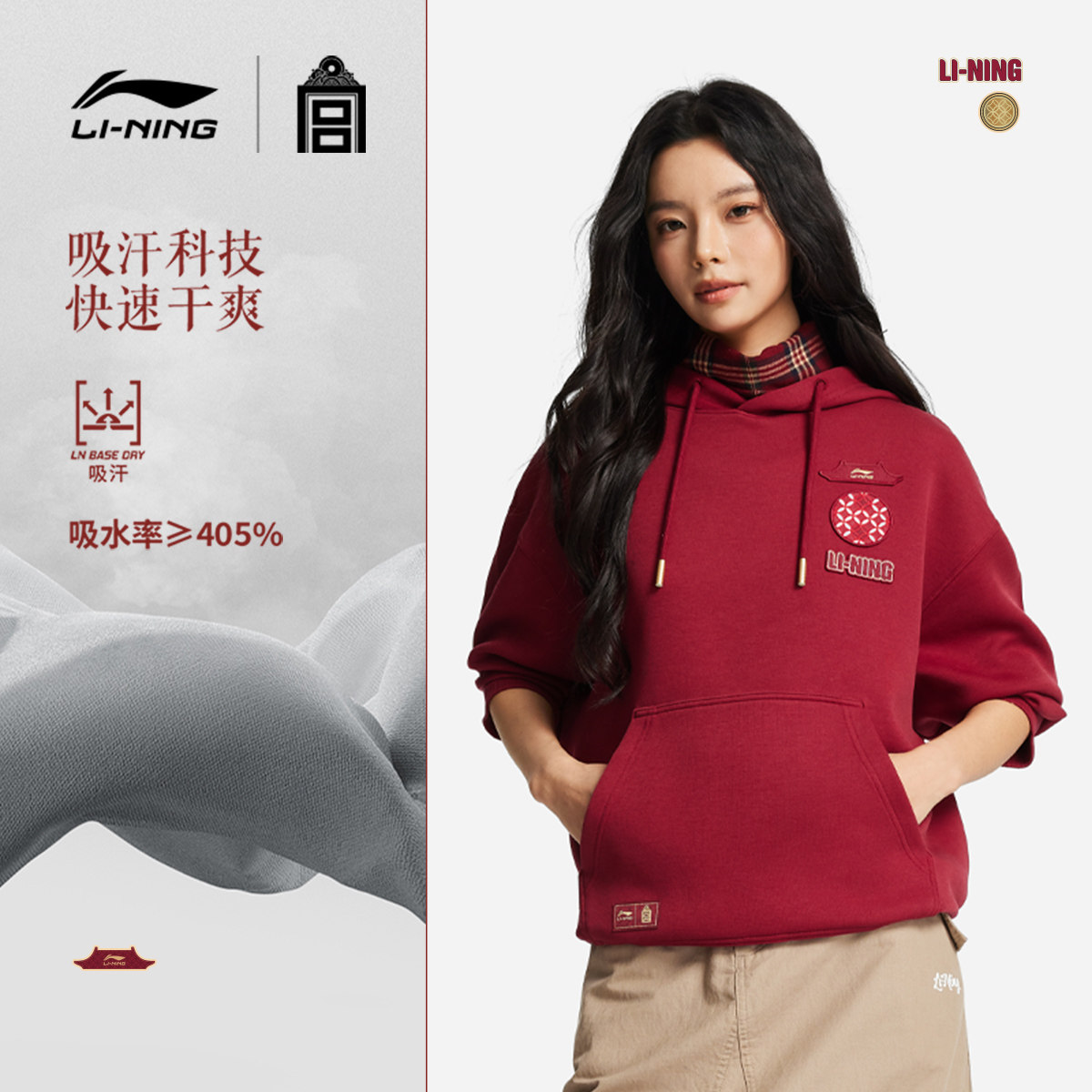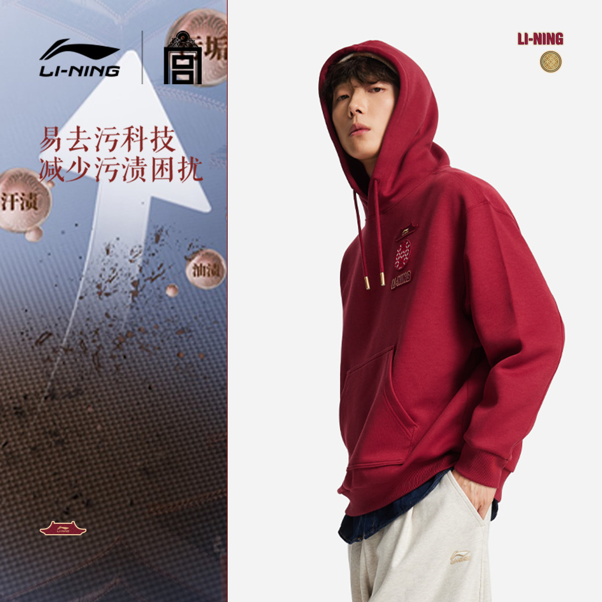 李宁卫衣男宽松百搭跑步套头衫 上衣保暖内搭男运动服 潮流圆领长袖