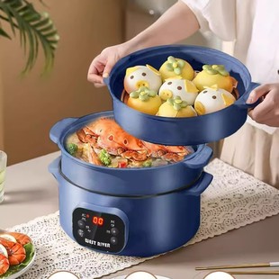 奥克斯电煮锅一体锅多功能小型2到3人宿舍泡面不沾小电锅蒸煮一体