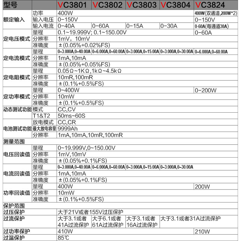 胜利VC3801可编程直流电子负载VC3802双通道400W负载测试仪VC3824