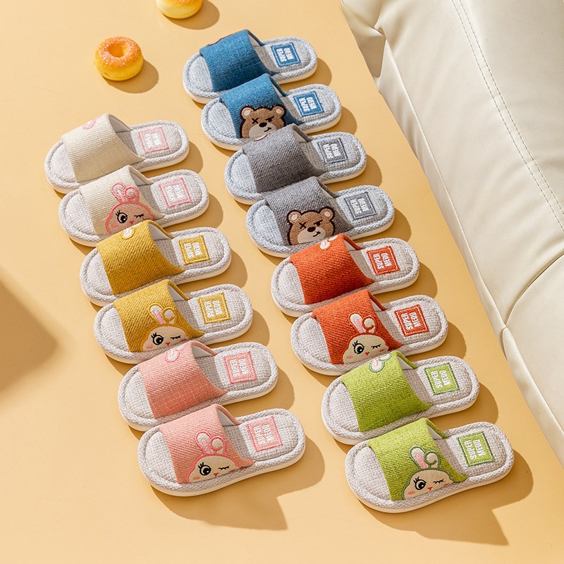 女童男孩可爱鞋 室内木地板家居儿童凉拖鞋 子 亚麻拖鞋 2025夏季
