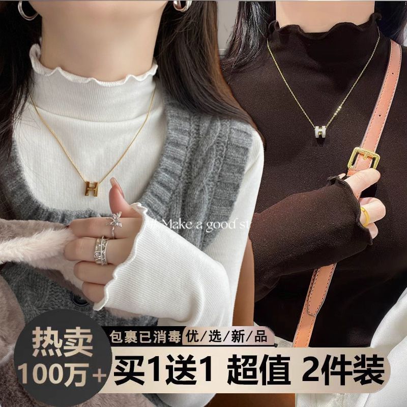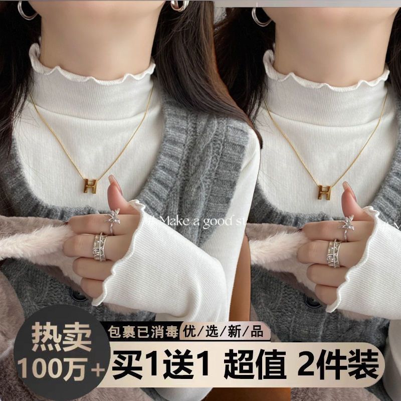 德绒打底衫 半高领加绒加厚保暖内搭木耳边上衣 女春秋冬高级感新款