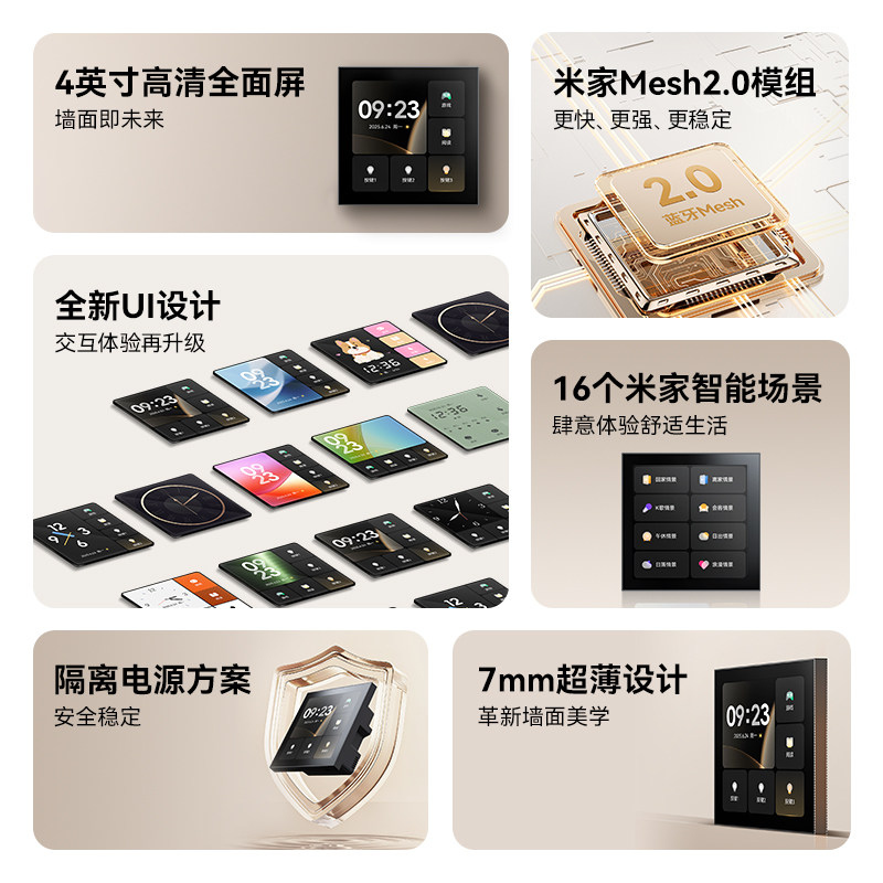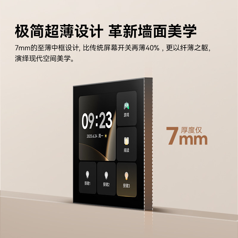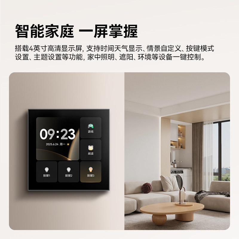 yeelight智能中控面板T1全面屏语音开关控制面板无线遥控智能语音