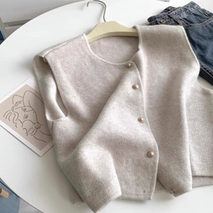 春秋温柔系单排扣金属扣气质百搭针织马甲背心女叠穿内搭坎肩上衣