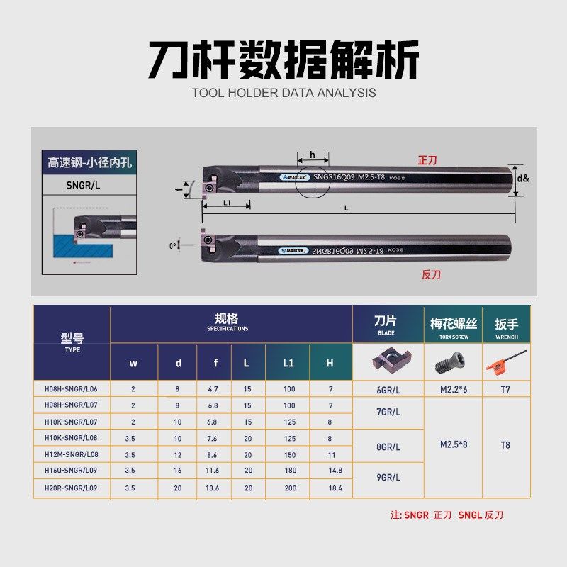 数控切槽刀杆高速钢小孔径内孔切断切槽割槽刀杆SNGR10K08 12M09