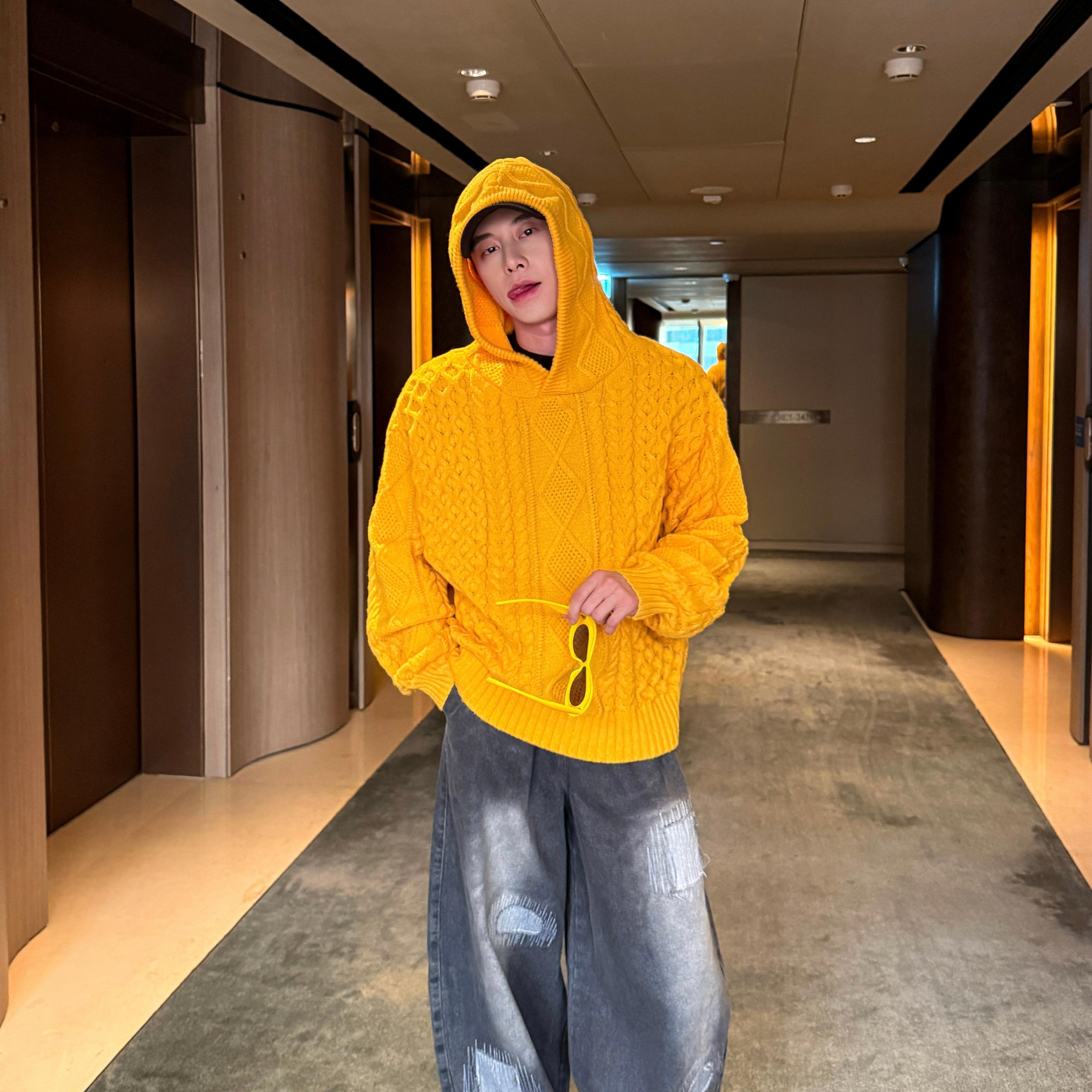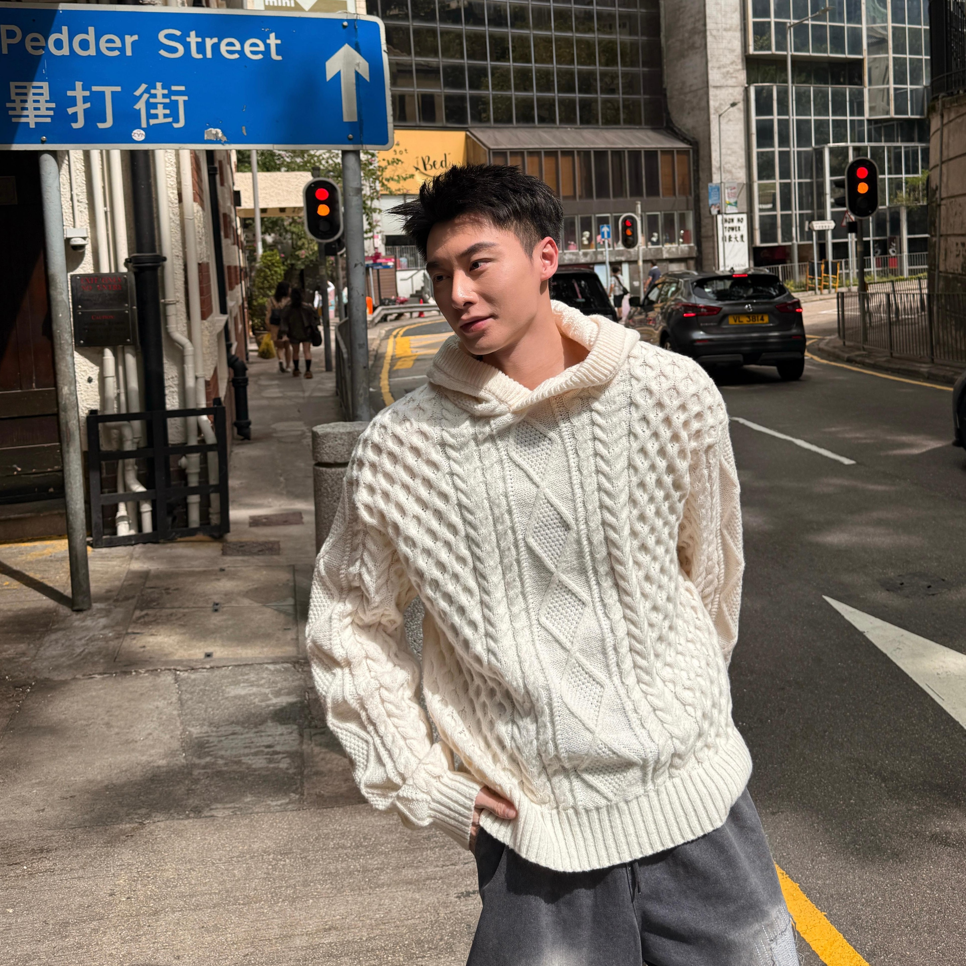 内搭外穿 百搭简约复古连帽外婆织 获衣局 毛衣韩系扭花针织经典