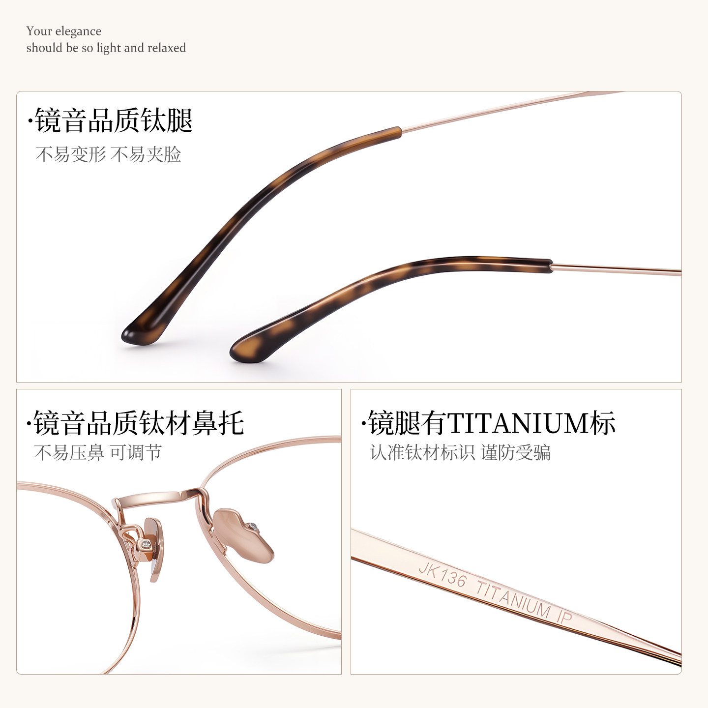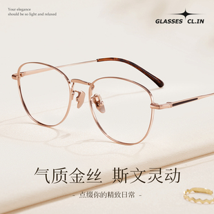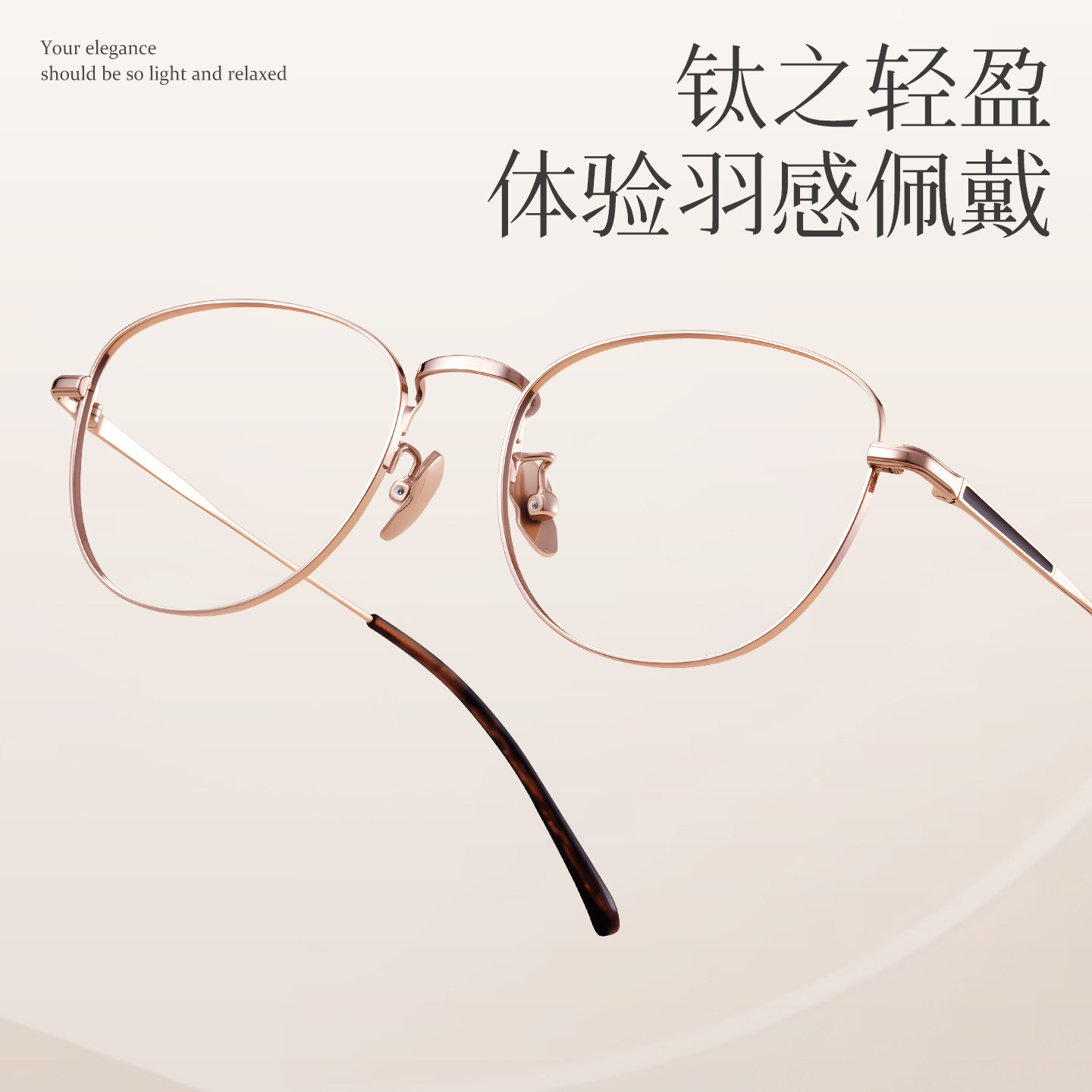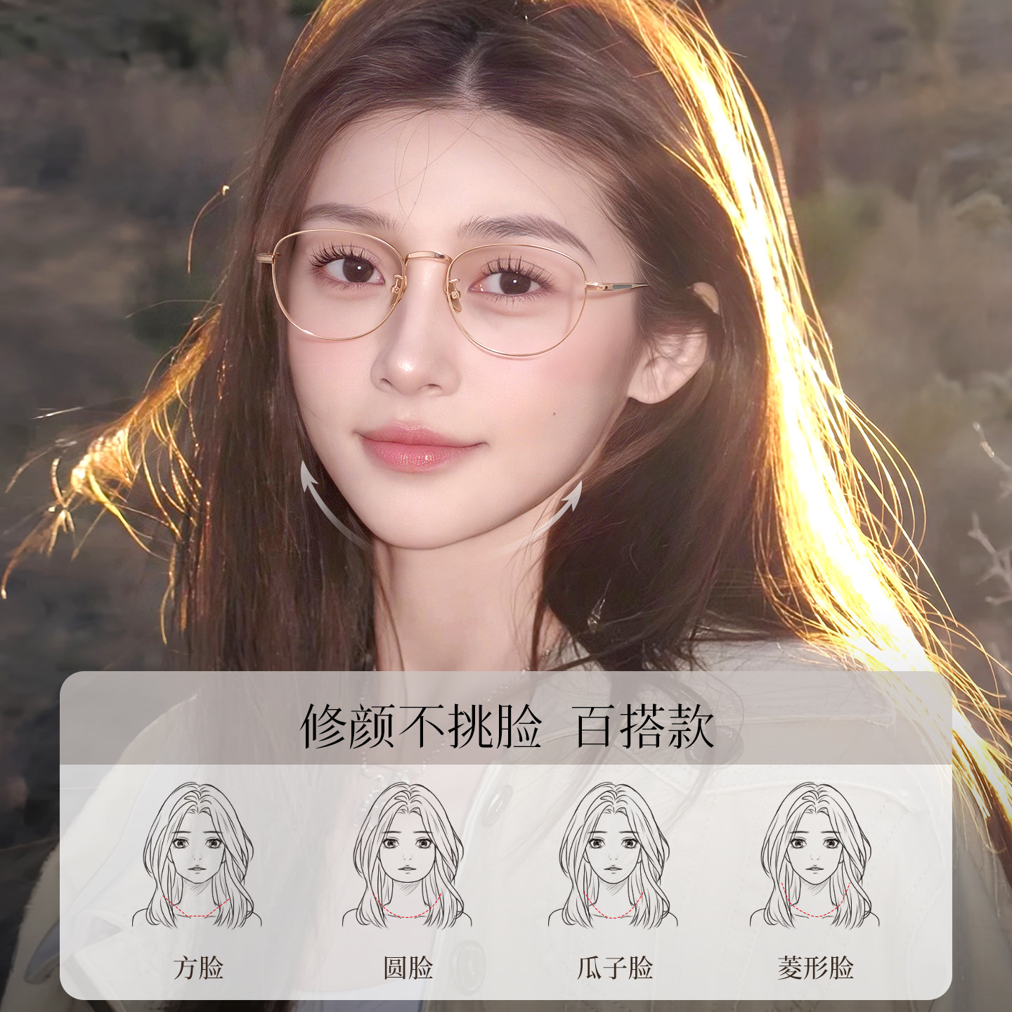 超轻纯钛金丝猫眼眼镜近视女度数可配防蓝光素颜高级感细框眼睛架