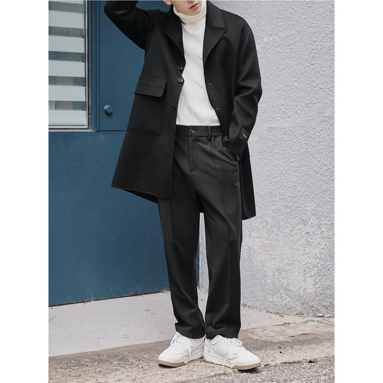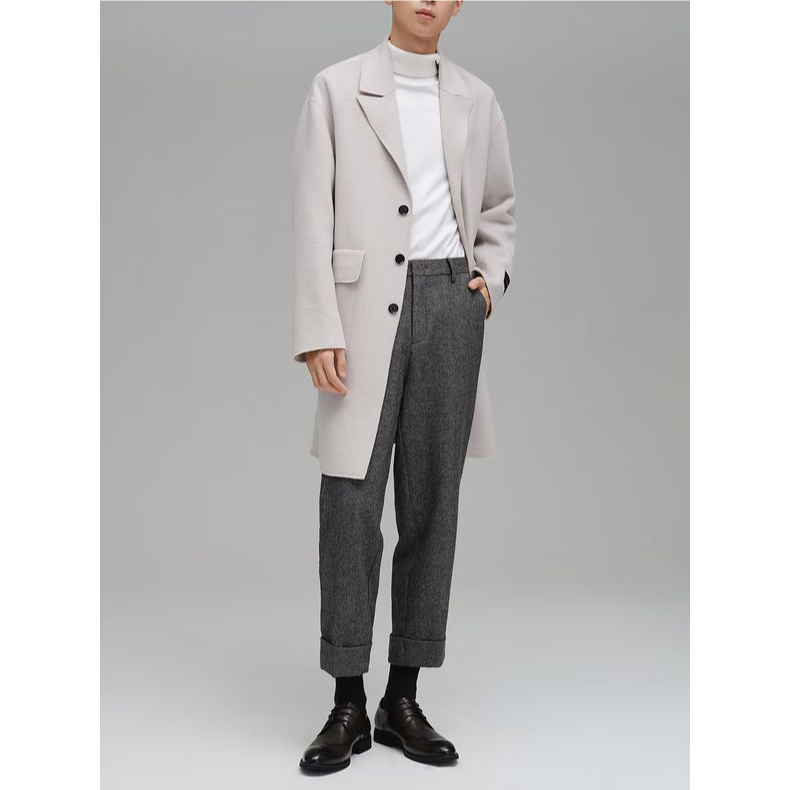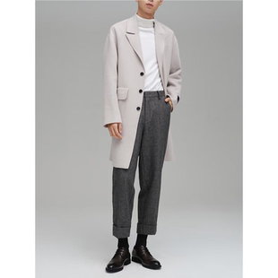 领双排扣呢子风衣外套加厚ins潮流 过膝西装 冬季 毛呢大衣男中长款
