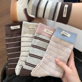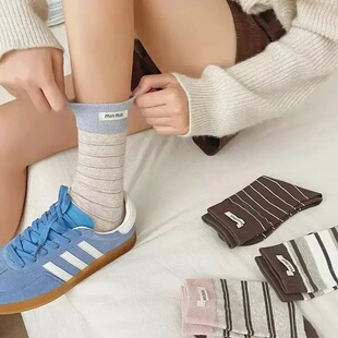 条纹袜子女春秋冬中筒袜ins潮可爱日系运动韩版 长筒袜百搭学院风