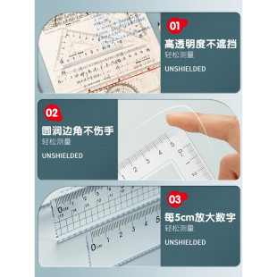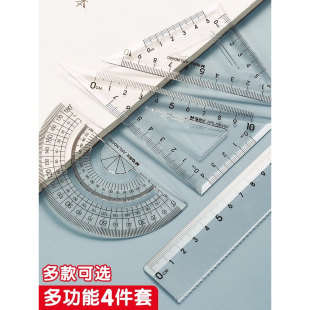 晨光套尺四件套不费眼尺子中小学生专用亚克力多功能尺高透明三角尺板量角器套装 直尺15cm刻度尺20cm考试文具