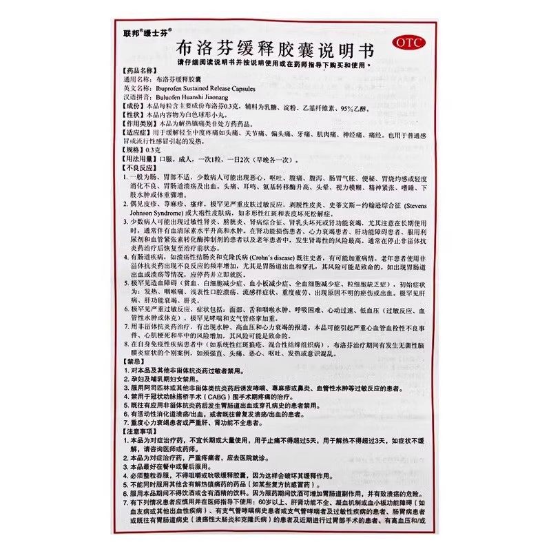 芬必得布洛芬缓释胶囊解热镇痛感冒流感偏头痛牙关节痛0.3g 24粒