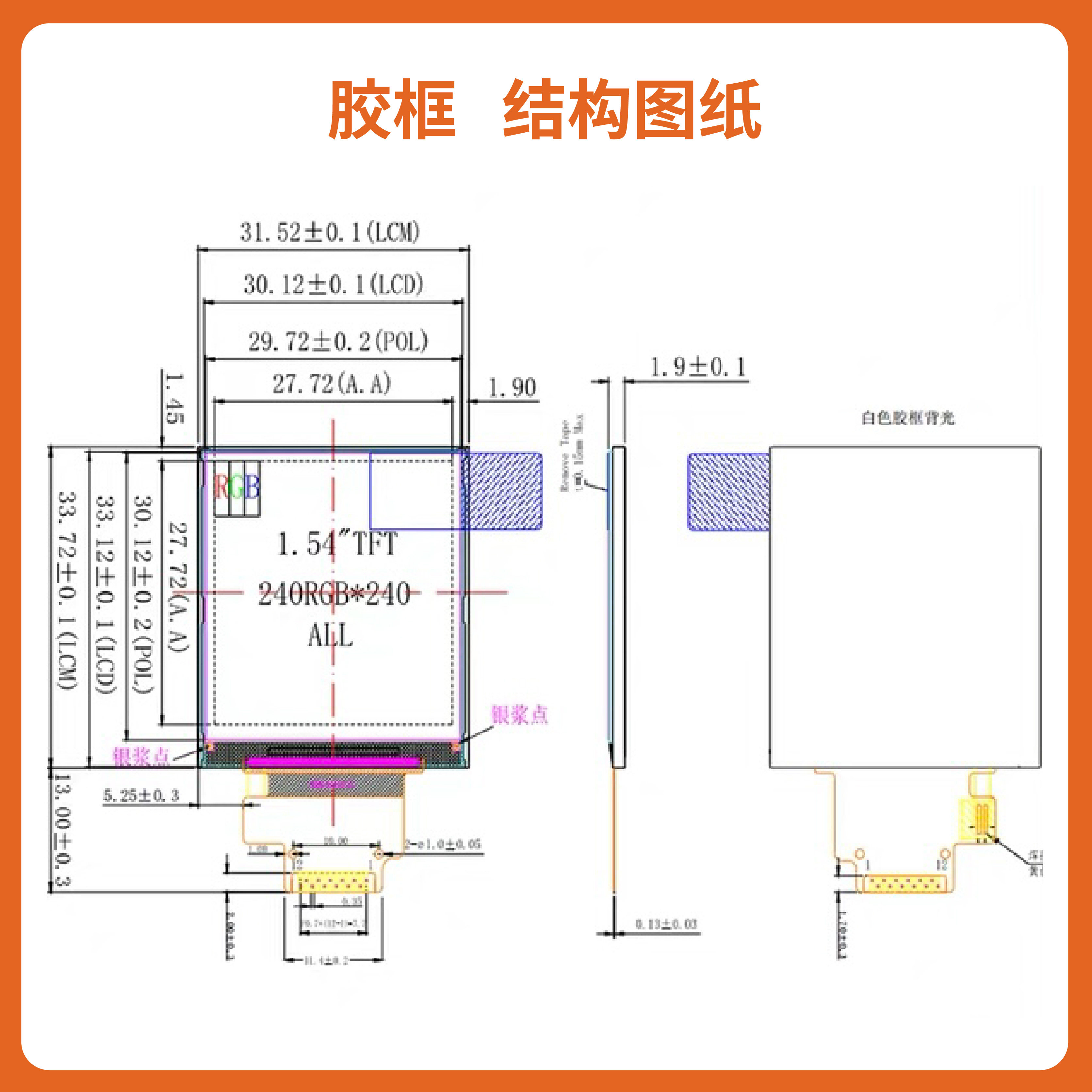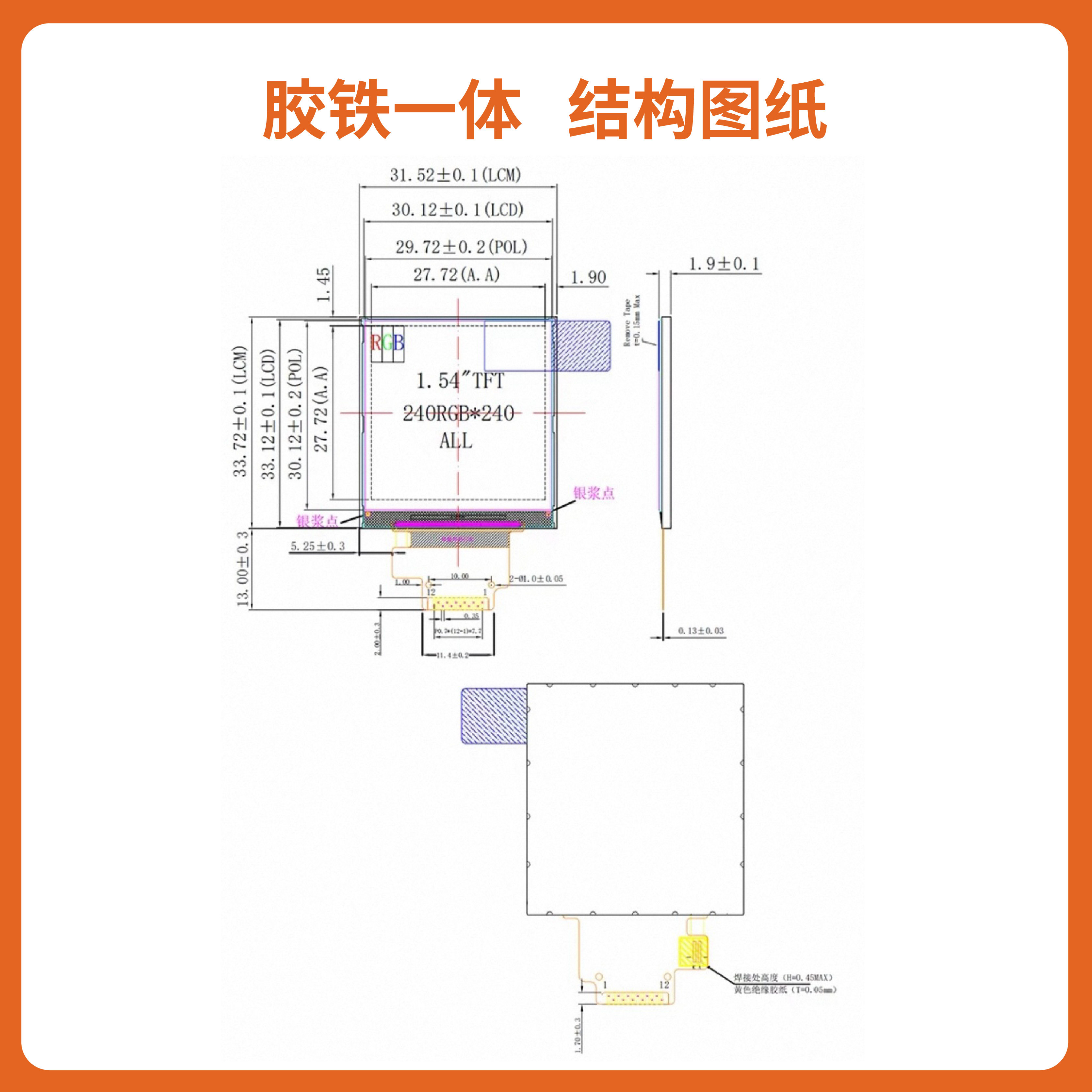TFT液晶IPS裸屏可爱橙 240x240驱动ST7789 1.54英寸TFT LCD显示屏