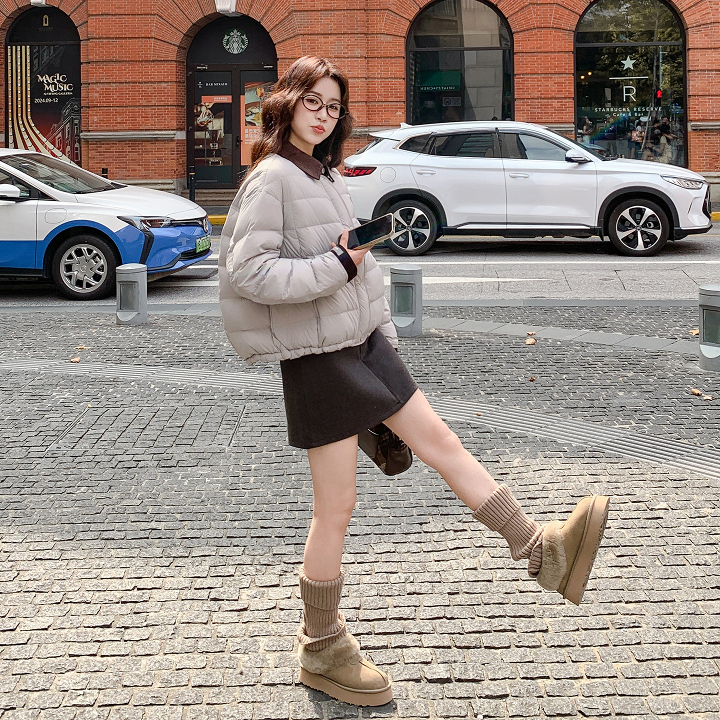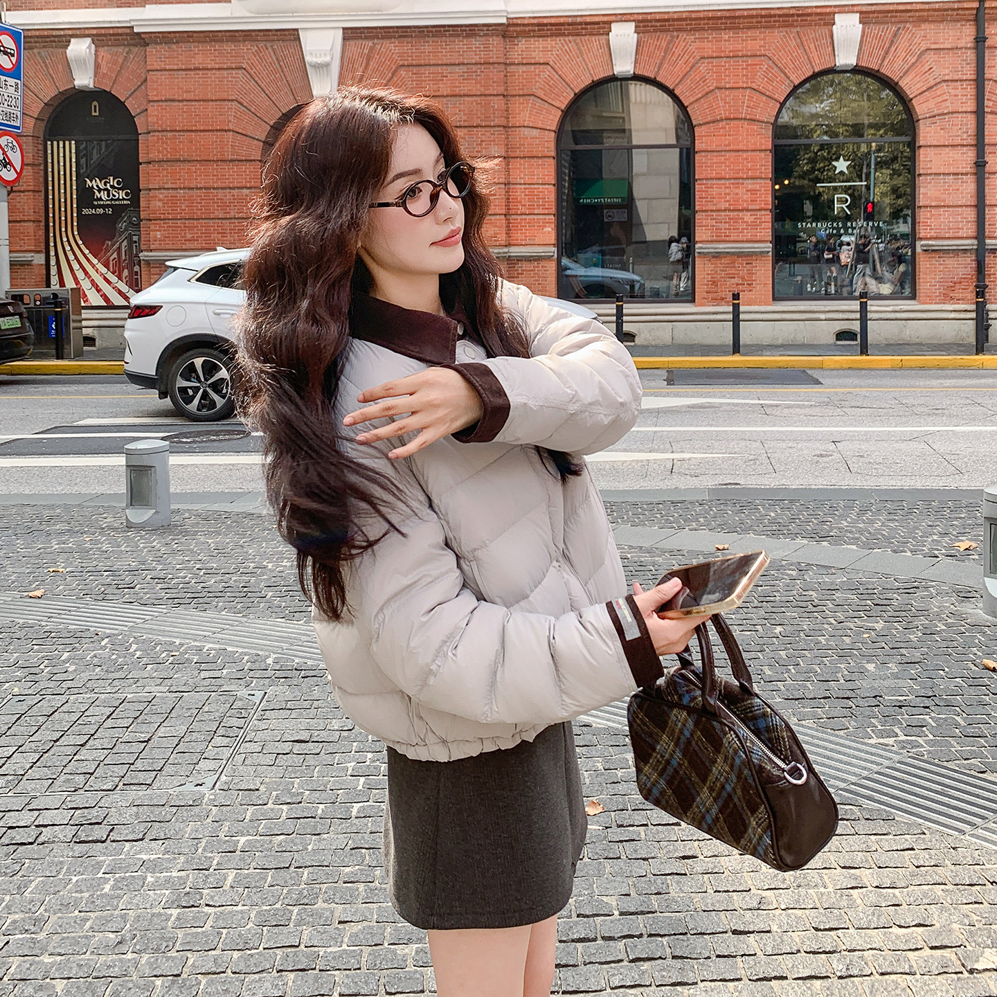 休闲短款 拼接针织时尚 新品 外套 系列鸭鸭轻薄羽绒服女2025冬季