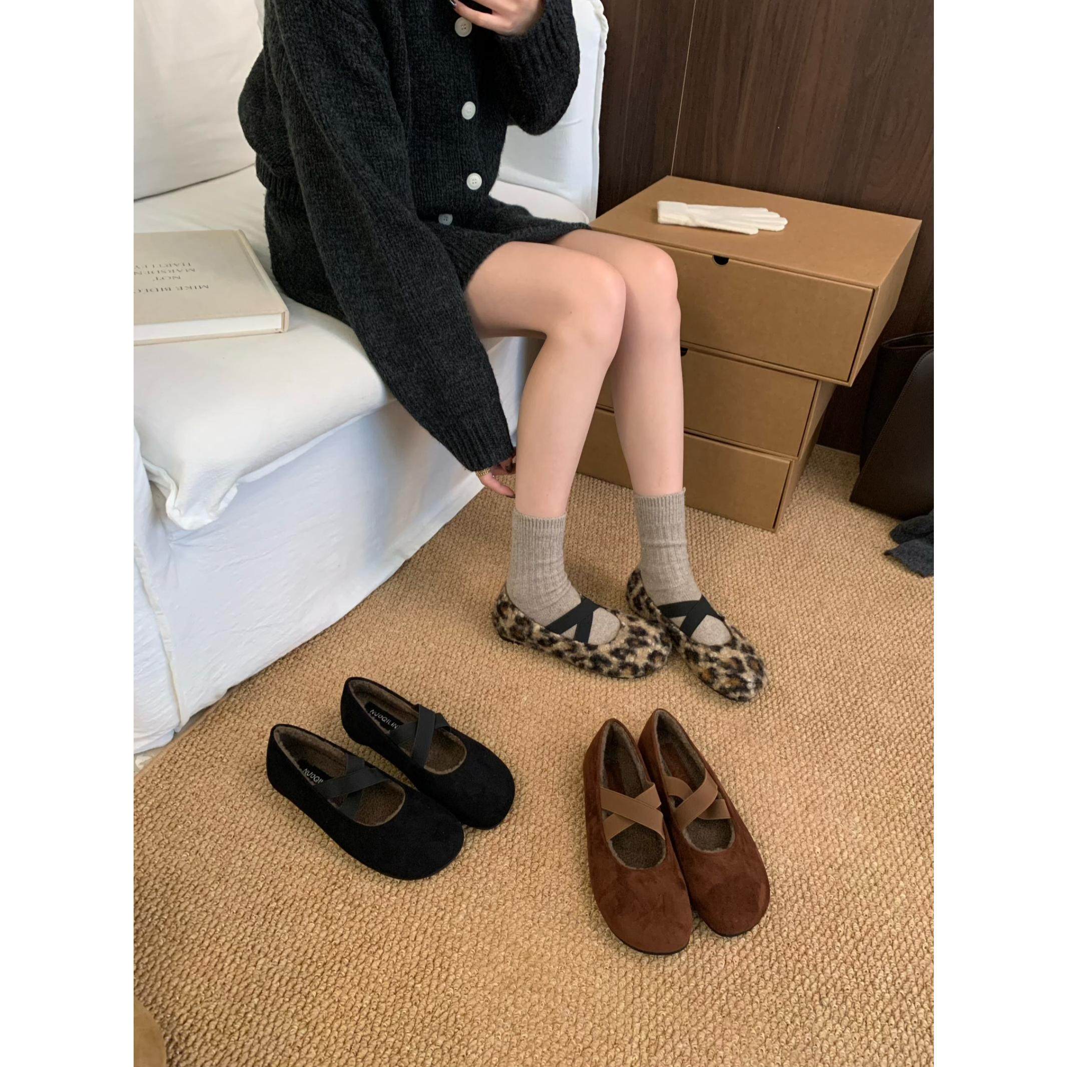 平底加绒玛丽珍单鞋 复古秋冬芭蕾鞋 实拍nuoqilin芭蕾鞋 FQ3
