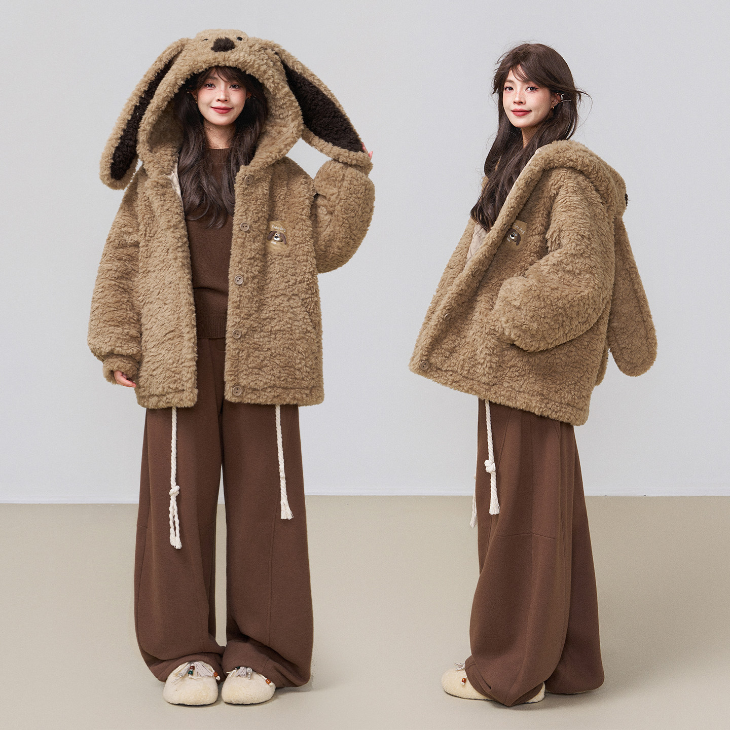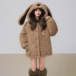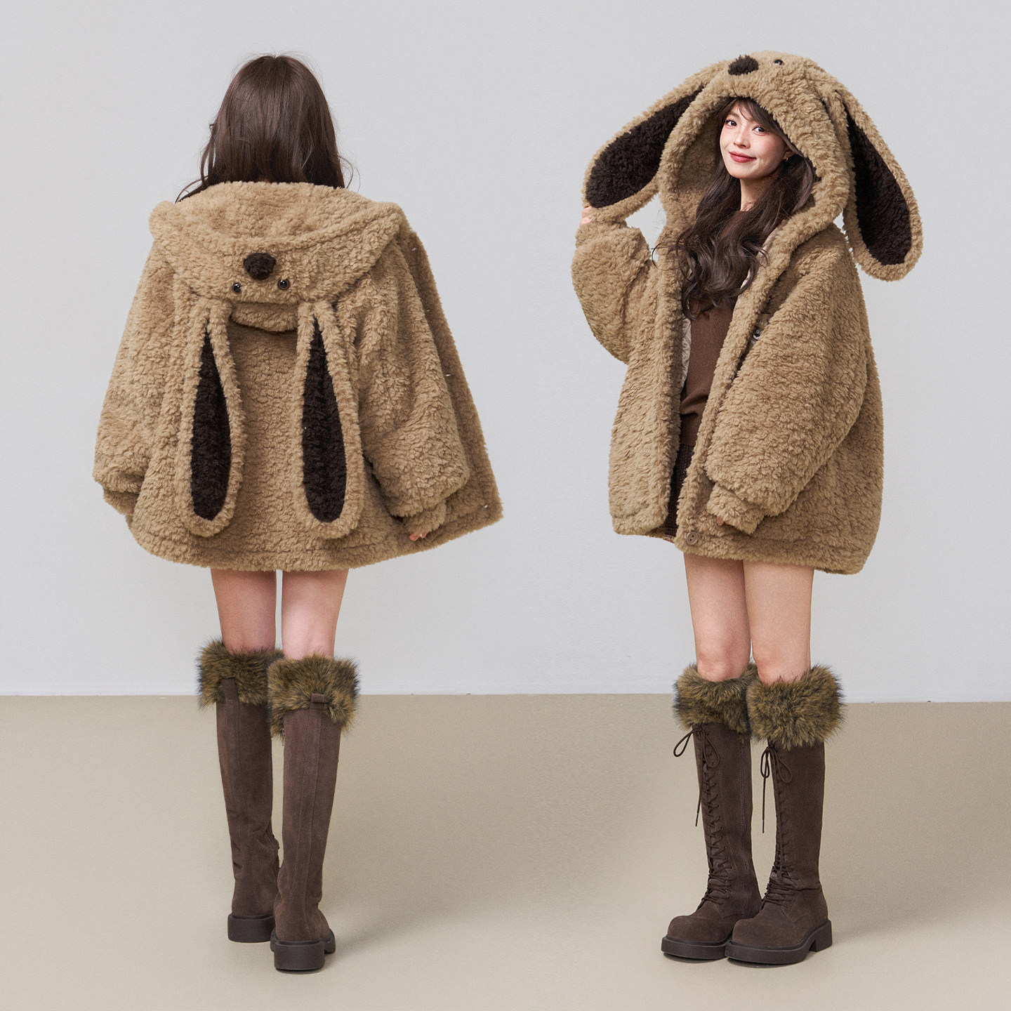 宽松连帽毛绒棉服女保暖加厚独特漂亮小棉袄外套 胖mm韩版 大码 女装