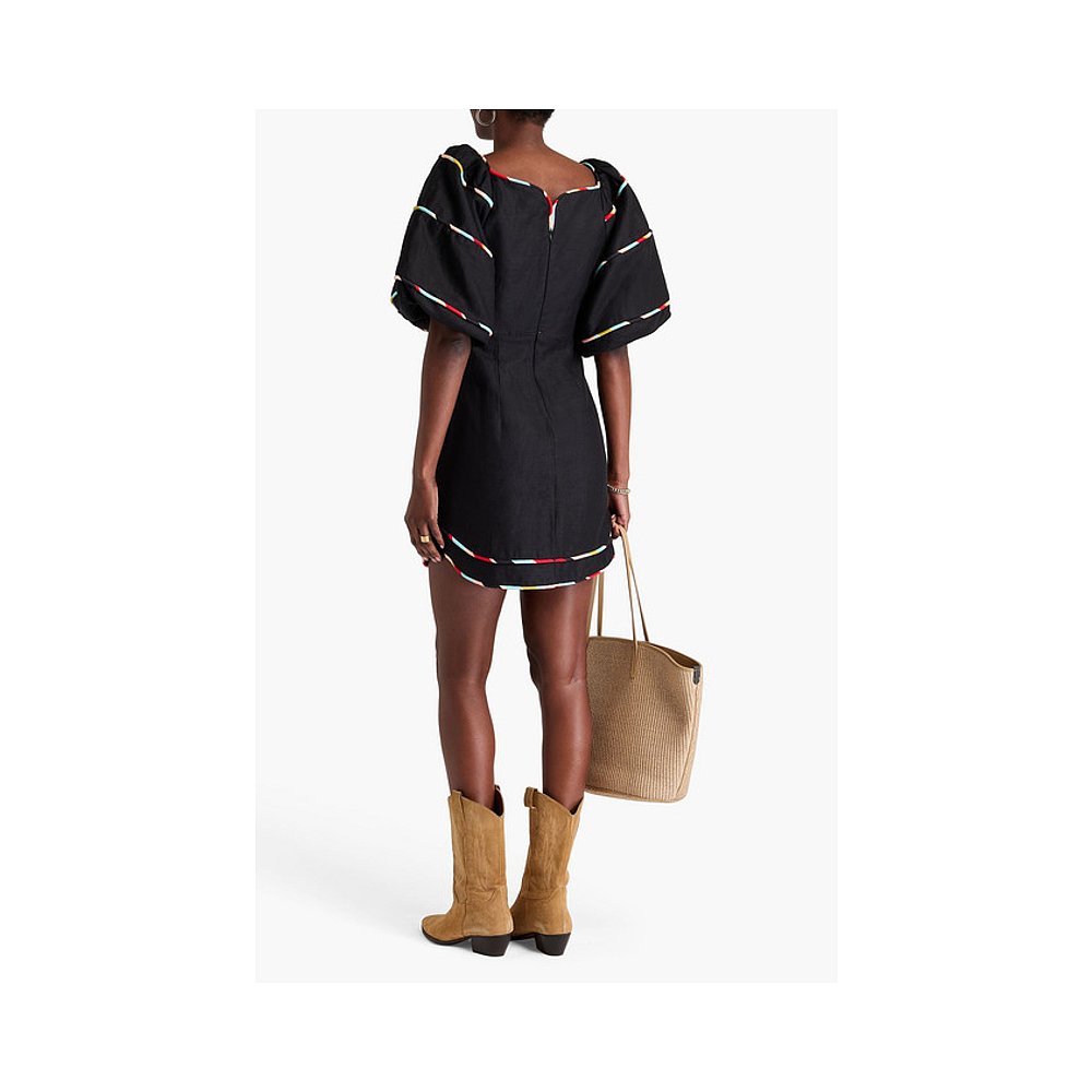 潮奢 条纹亚麻迷你连衣裙 FARM 女士 318977BLACK RIO 1h可退