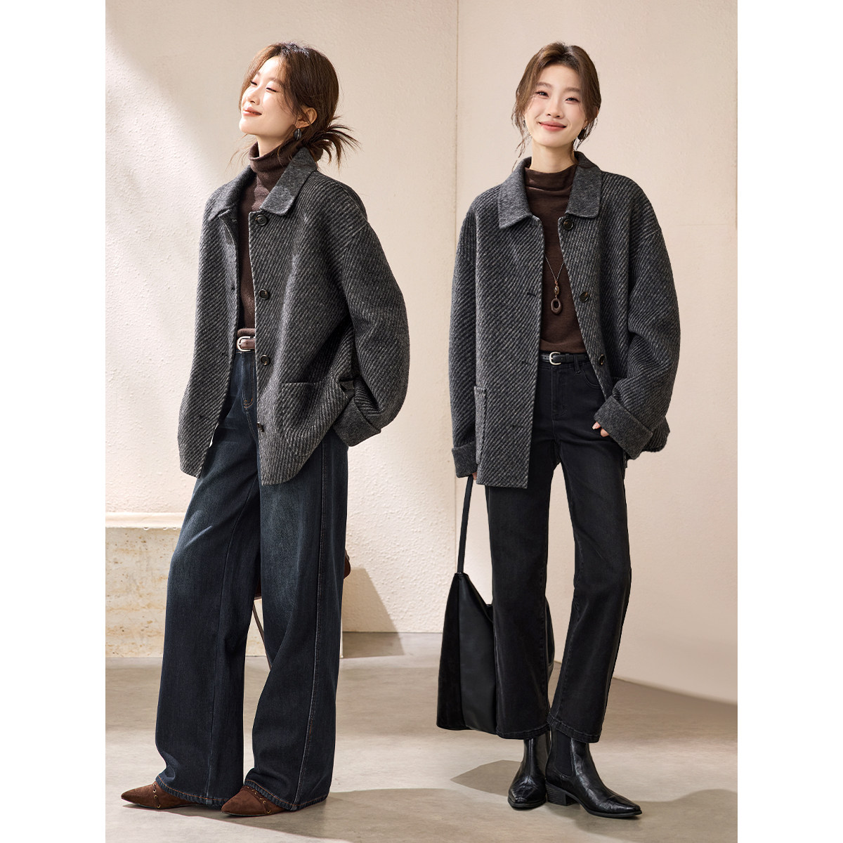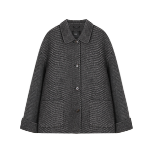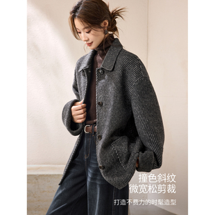 沫晗依美2025冬新款 洋裁双面呢大衣女 含绵羊毛双色撞色翻领中长款