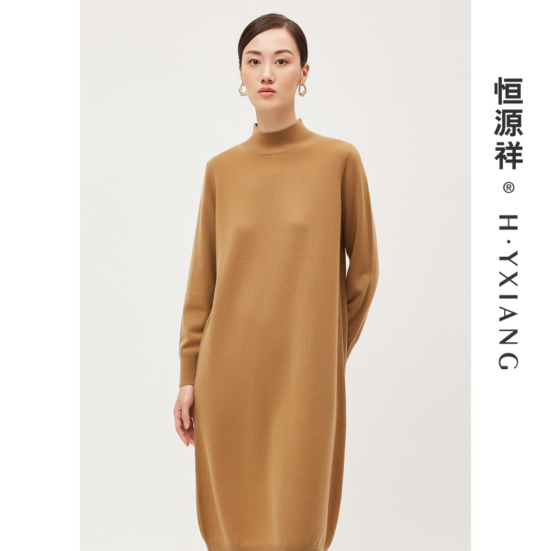 纯色堆堆领羊绒针织打底衫 毛衣秋冬款 女高领修身 一线成衣山羊绒衫