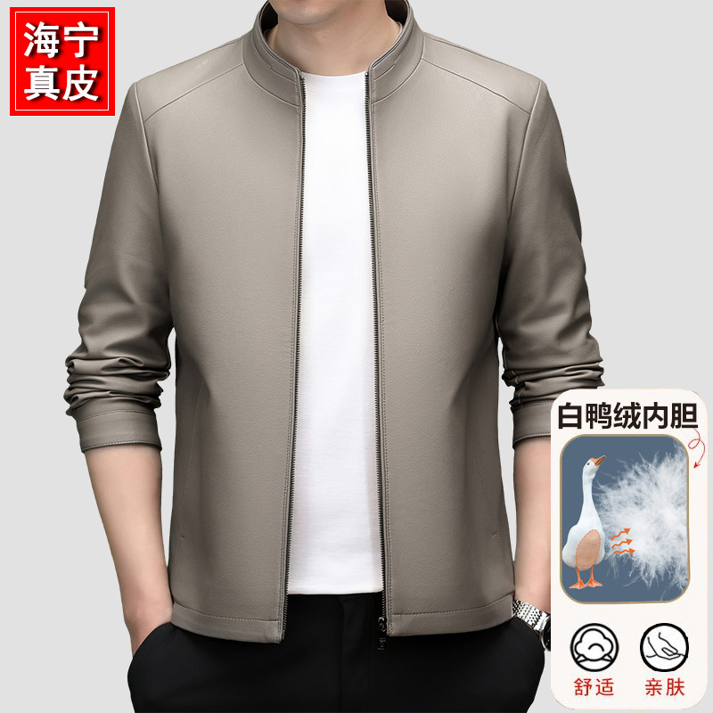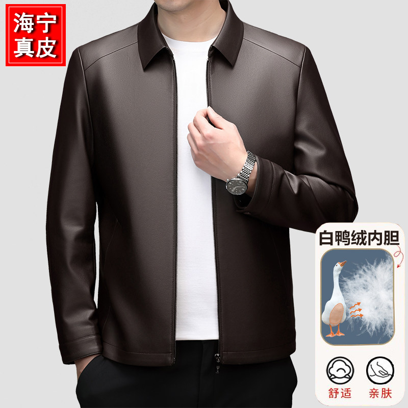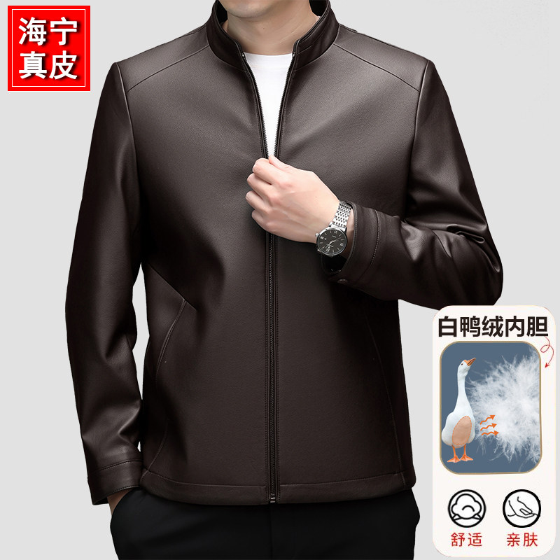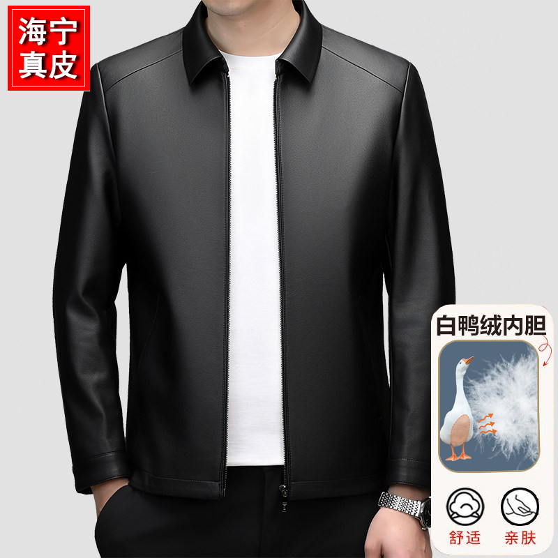 海宁真皮羽绒皮衣男中老年加绒加厚秋冬皮夹克爸爸绵羊皮保暖外套